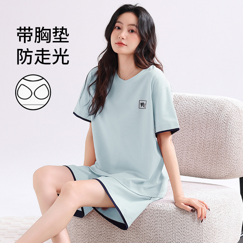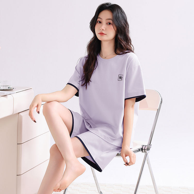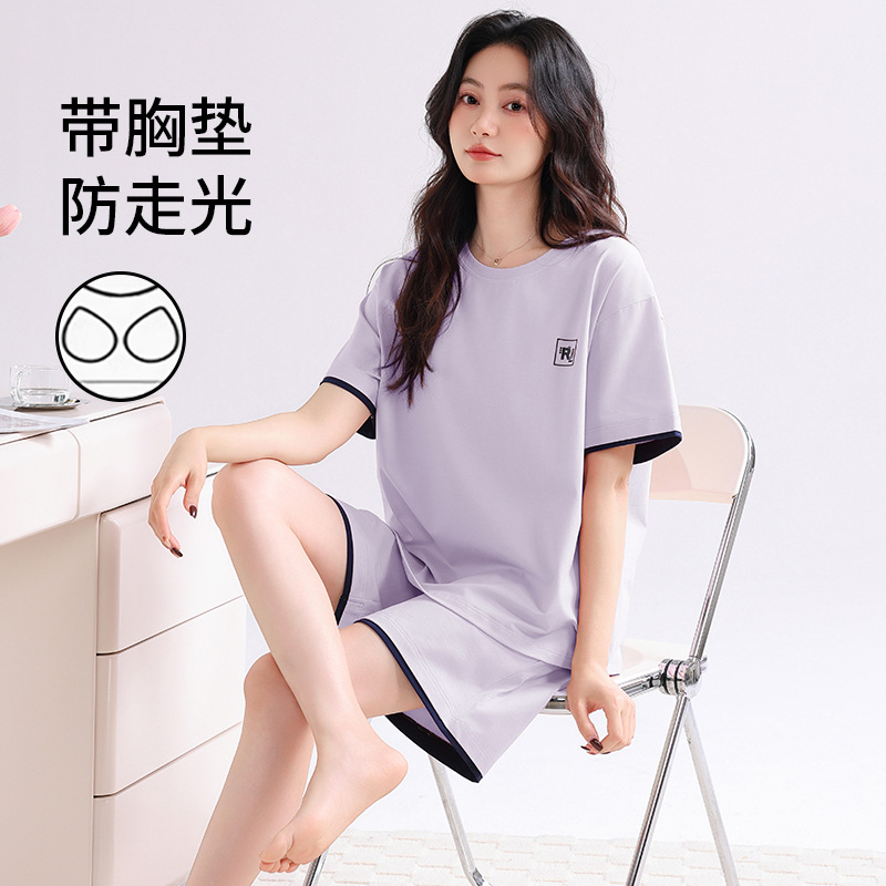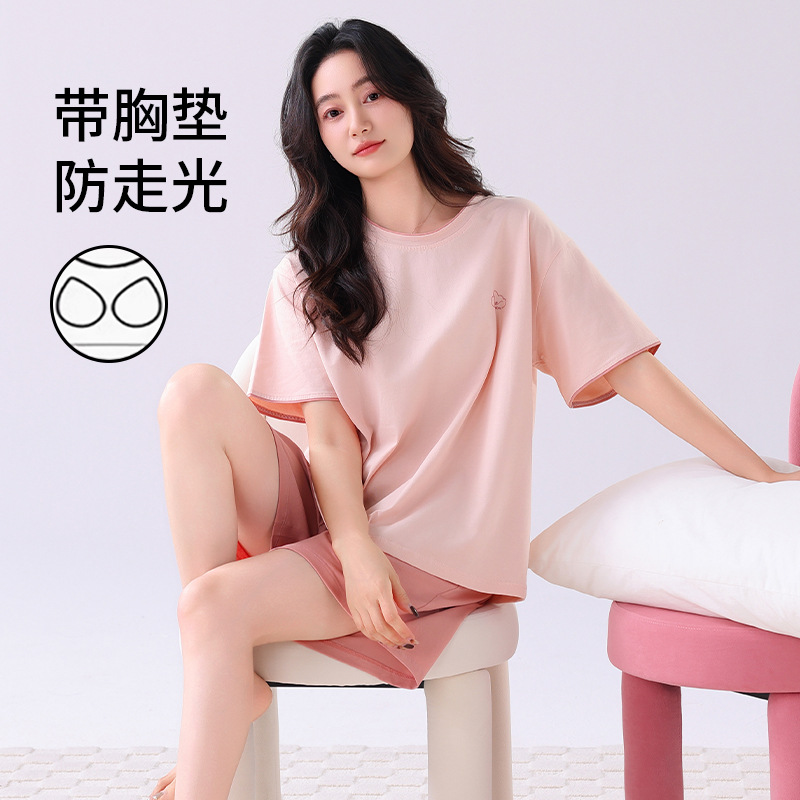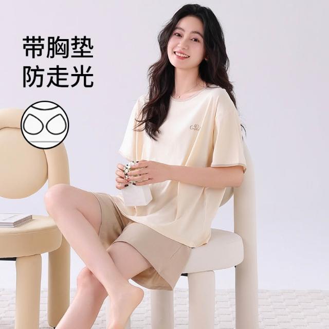 帶胸墊睡衣女士夏季涼感莫代爾短袖短褲夏天家居服可外穿休閑套裝