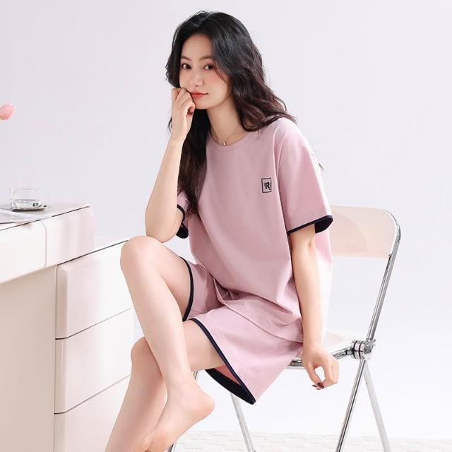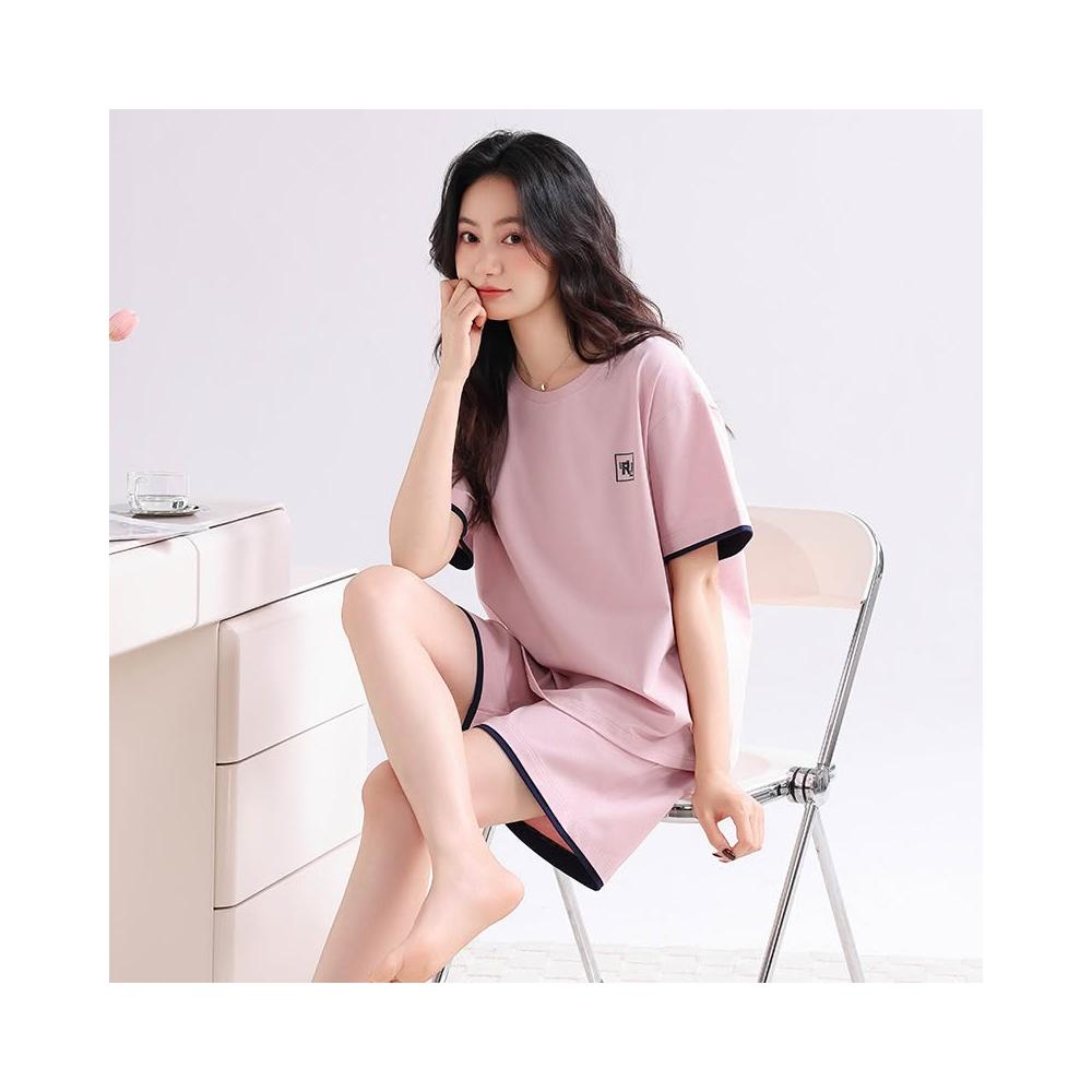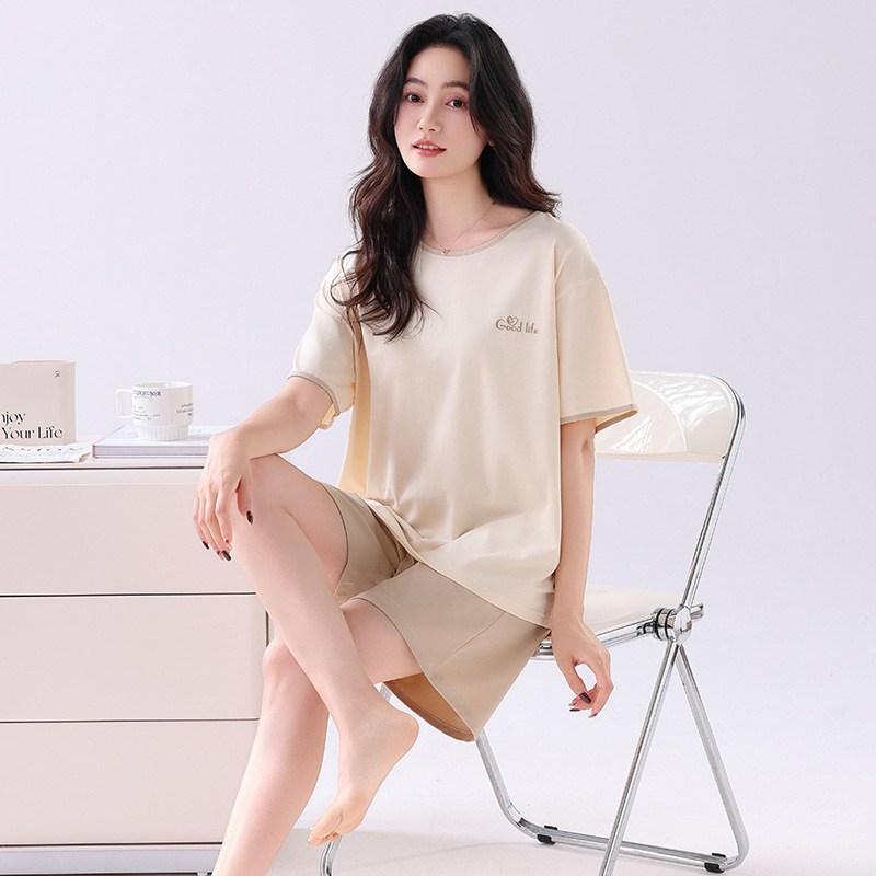 帶胸墊睡衣女士夏季涼感莫代爾短袖短褲夏天家居服可外穿休閑套裝