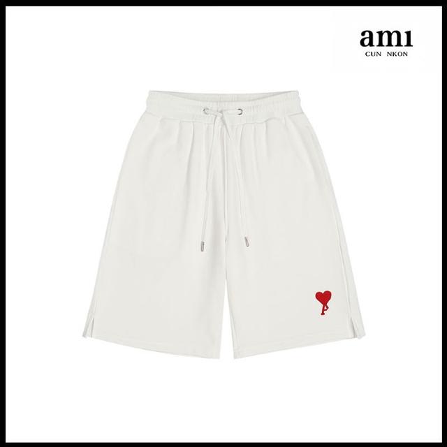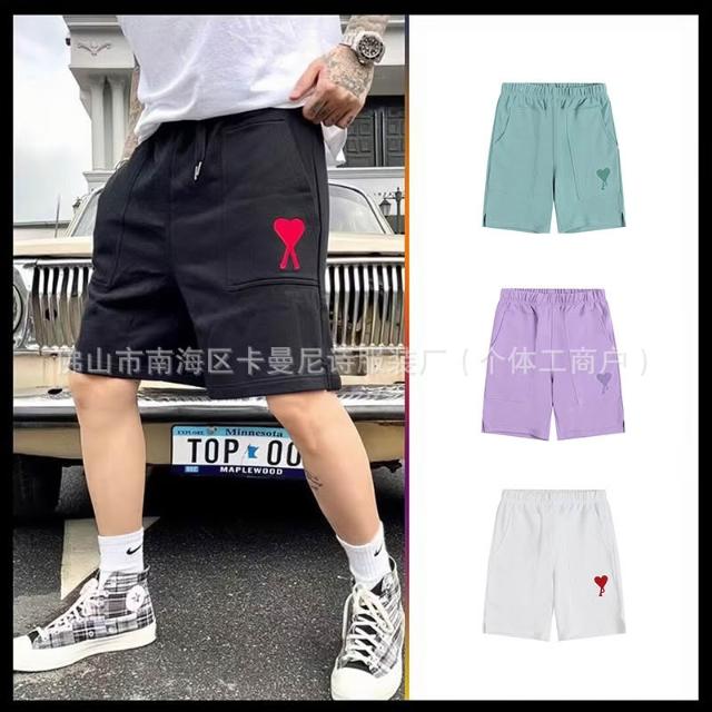 愛心刺繡短褲 夏季休閑寬松純色運動五分褲 男女情侶款短褲