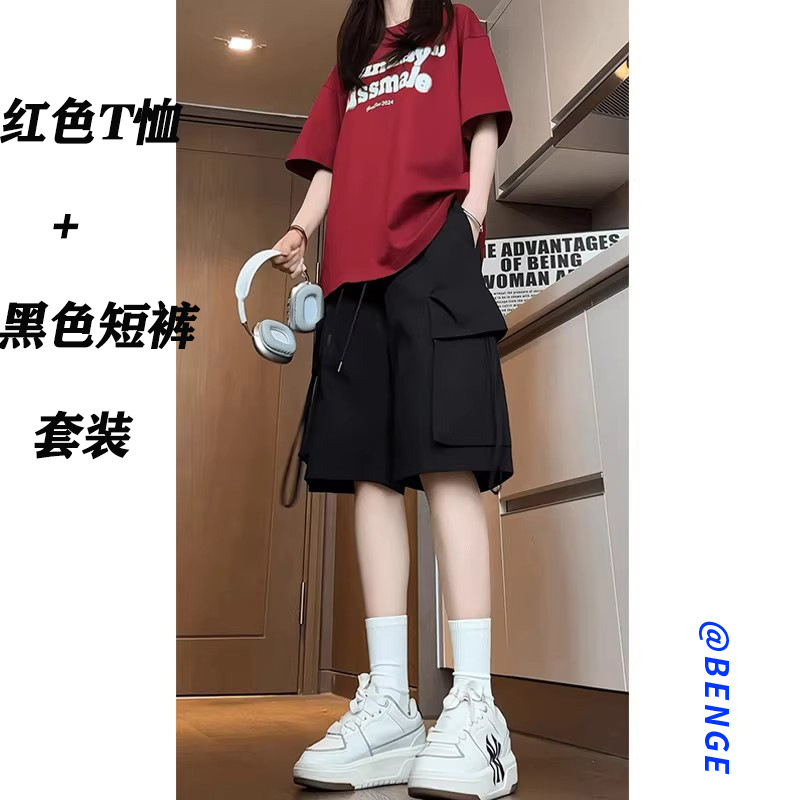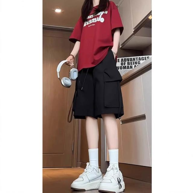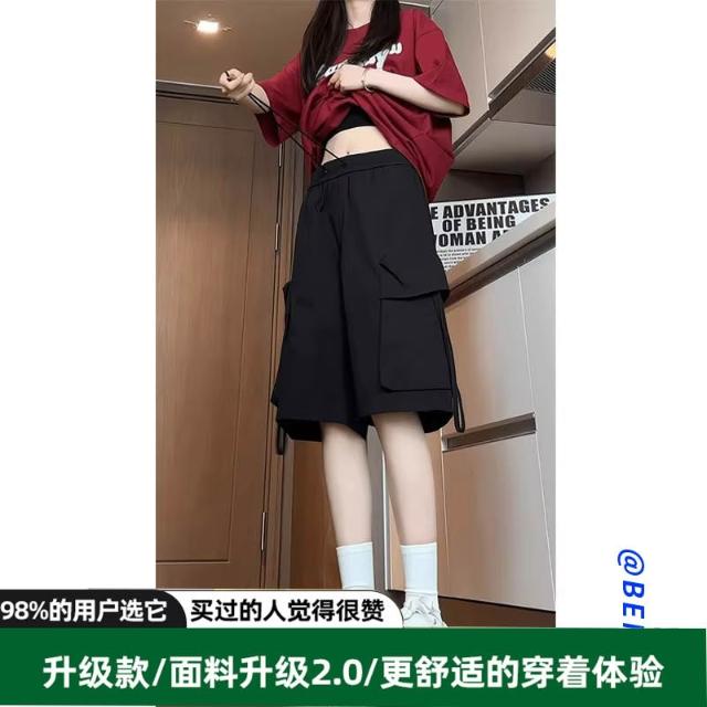 雲溪 過膝工裝短褲女 新款胖mm夏季五分褲子 休閑寬松運動大碼七分褲