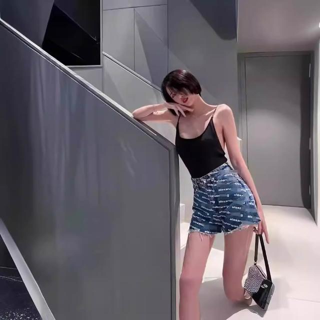 雲溪 夏季字母滿印牛仔短褲 毛邊百搭時尚休閑辣妹熱褲