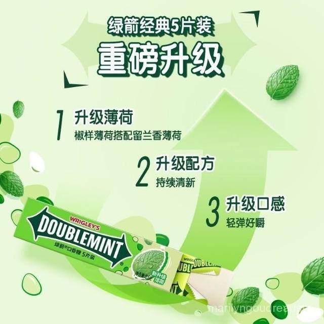 水水臻選 綠箭口香糖5片20條盒裝原味薄荷清新口氣休閒零食糖果批髮