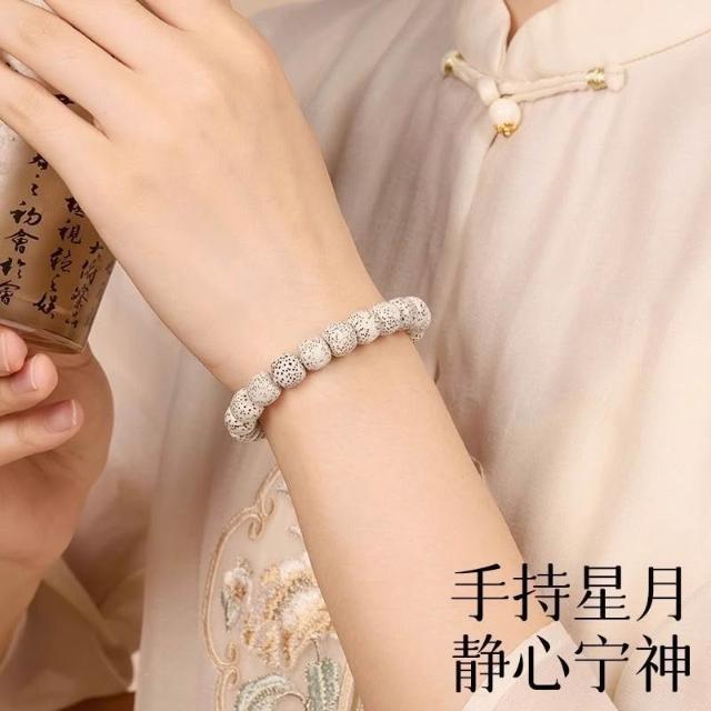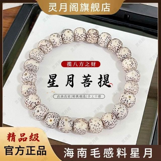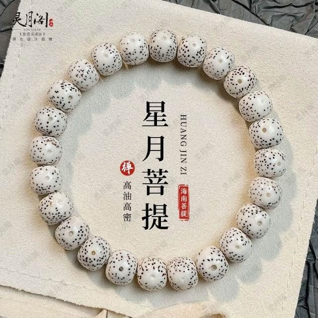 聰明甄選海南星月菩提手串男款單圈高密順白五指山正月留白佛珠文玩手鍊女