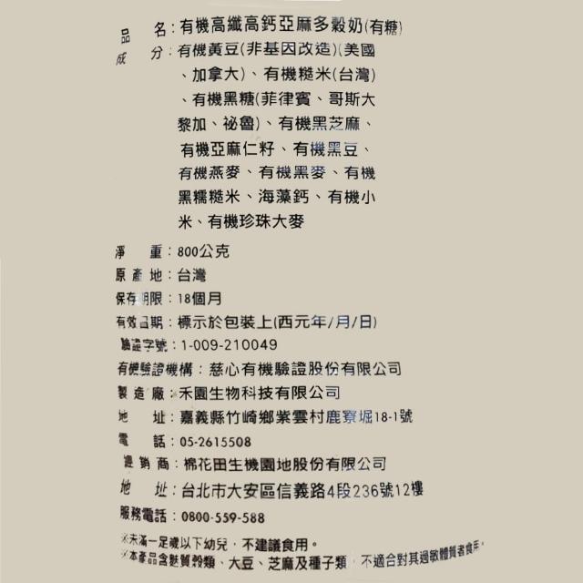 棉花田有機高纖高鈣亞麻多穀奶(有糖)(850g/罐)