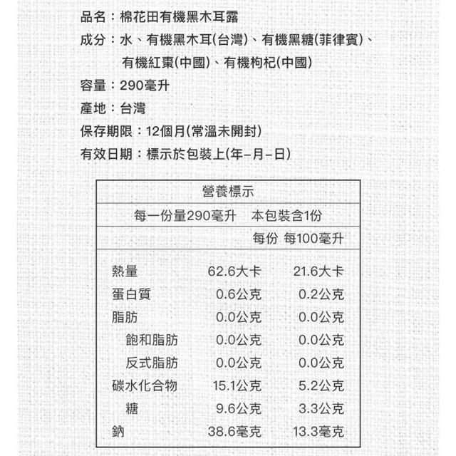 Cotton Field Health Stores 棉花田有機黑木耳露 (290ml/瓶)-24入組