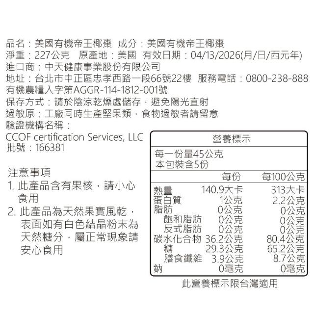 美國有機帝王椰棗-2包組 (227g/包)效期2026.8.5