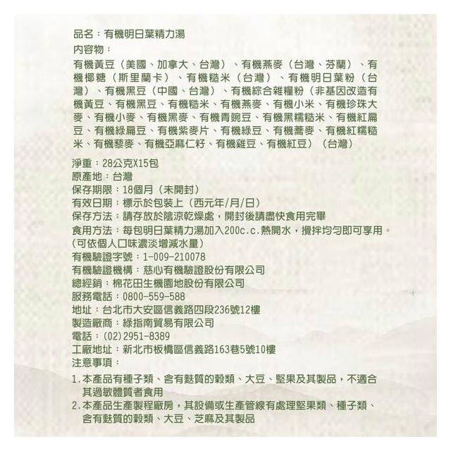 棉花田有機明日葉精力湯-2盒組 (28g*15包/盒)