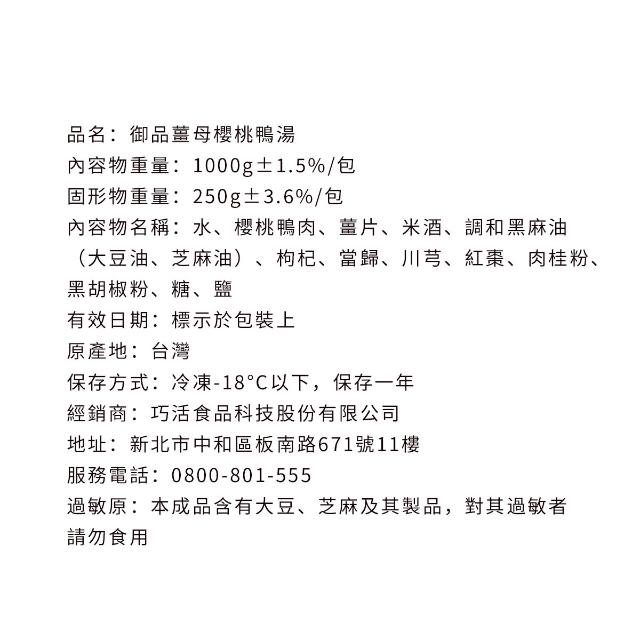 巧活食品御品薑母櫻桃鴨湯(1000g(固形物250g)/包)