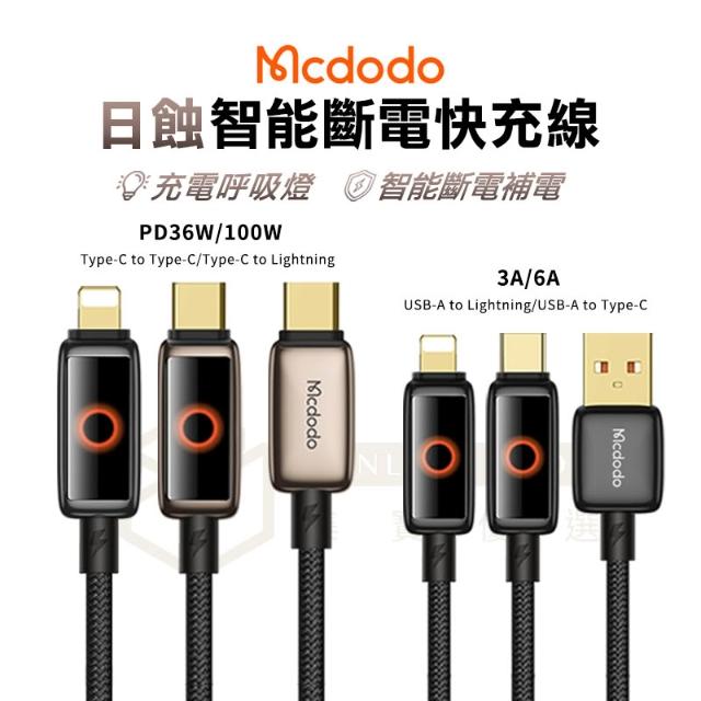 Mcdodo 麥多多 日蝕 智能斷電補電 充電線 傳輸線 100W快充 USB-C 雙Type-C 適用 i15 i16