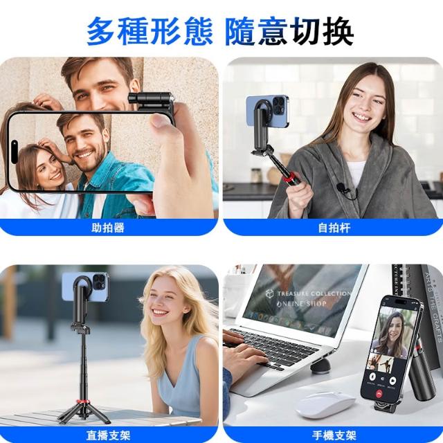 CYKE F08 超迷你自拍棒 MagSafe 磁吸自拍神器 360°旋轉 四合一鋁合金腳架 手機直播 旅遊自拍支架