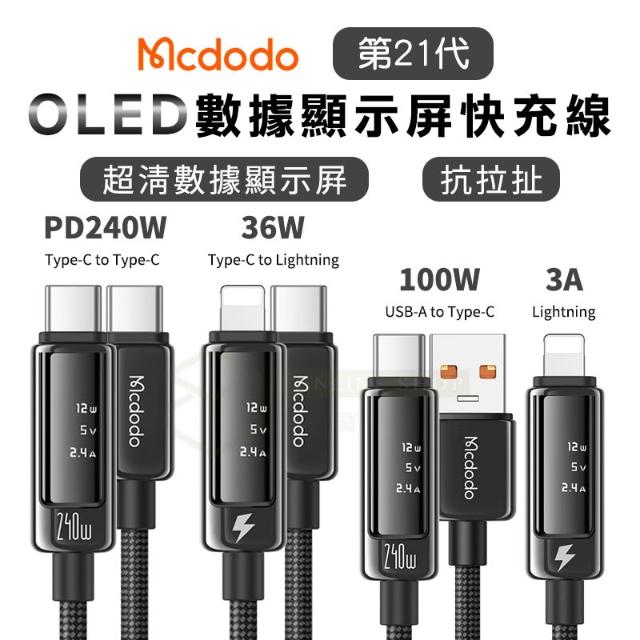 Mcdodo 麥多多 OLED 快充線 240W 螢幕顯示 充電線 傳輸線 PD快充 蘋果 type-c 快充 傳輸
