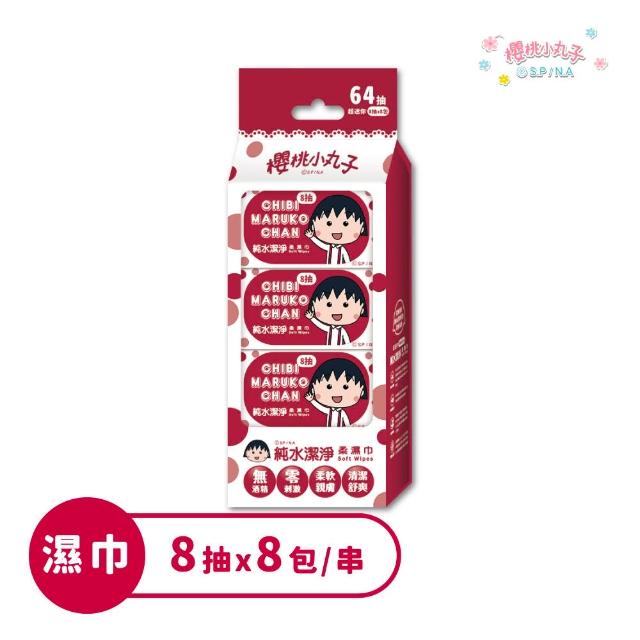 櫻桃小丸子櫻桃小丸子 純水潔淨柔濕巾8抽x8包 (1串) 隨身包 多入組