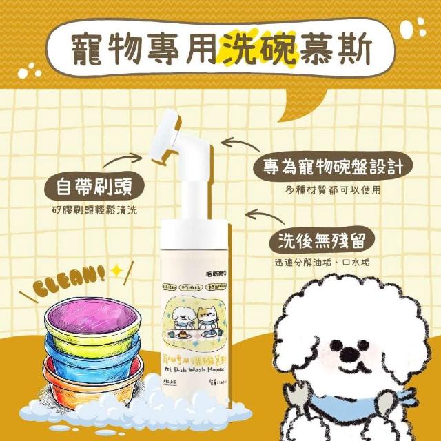 毛乾爽寵物專用清潔 洗碗慕斯 120ml 迅速分解 自帶刷頭 寵物友善 口水垢