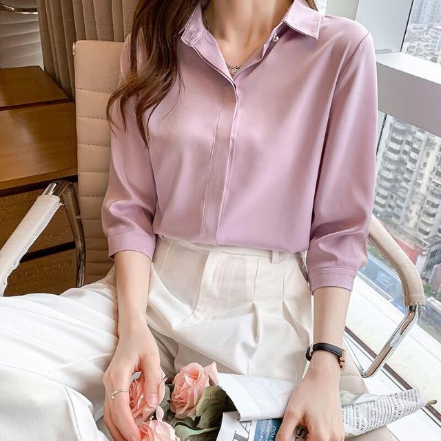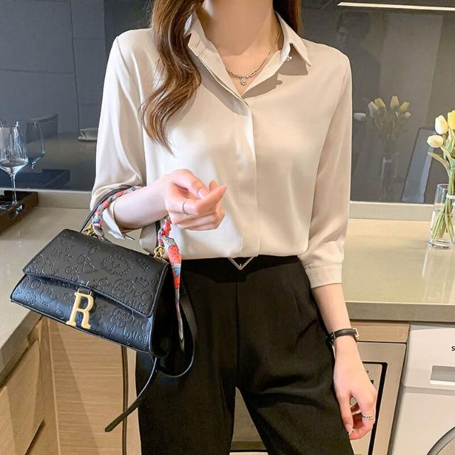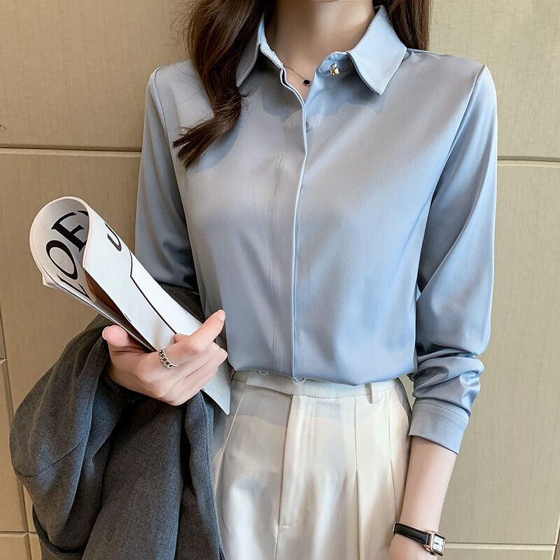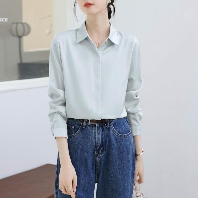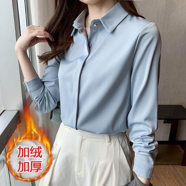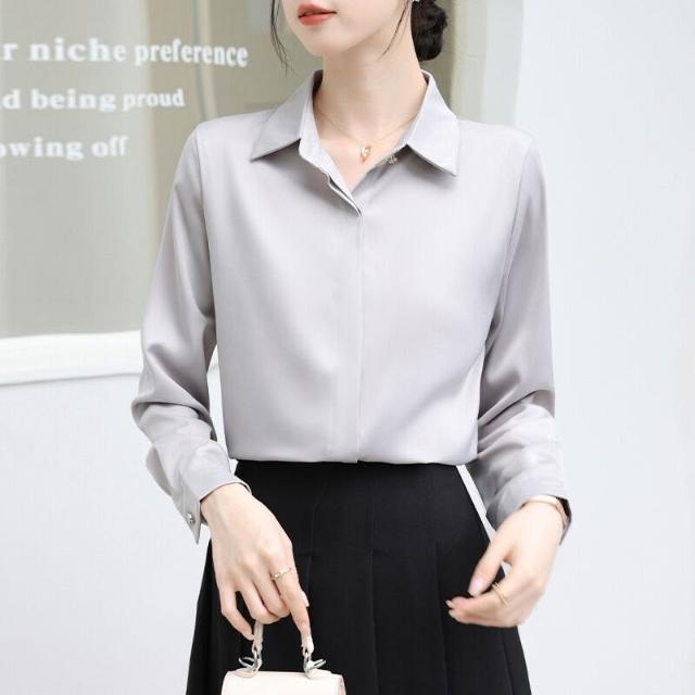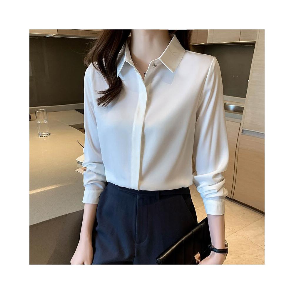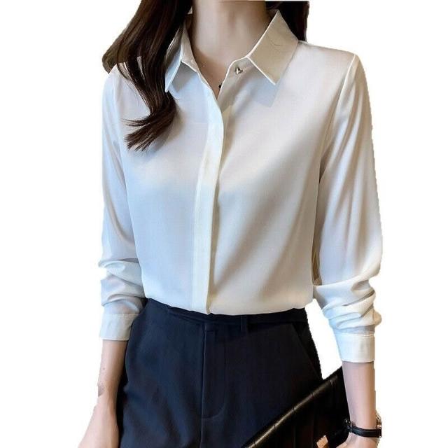 木槿衣坊 2025秋冬白色抗皺襯衫女長袖高級感職業正裝商務教資面試緞面襯衣 70