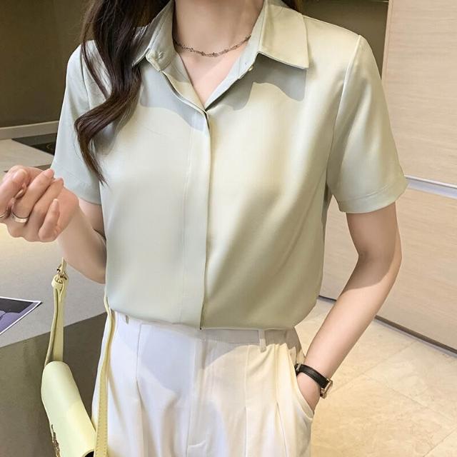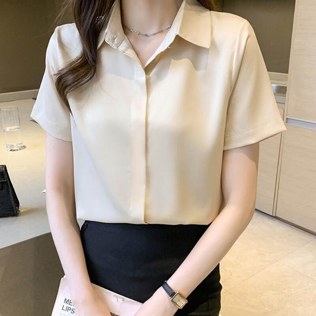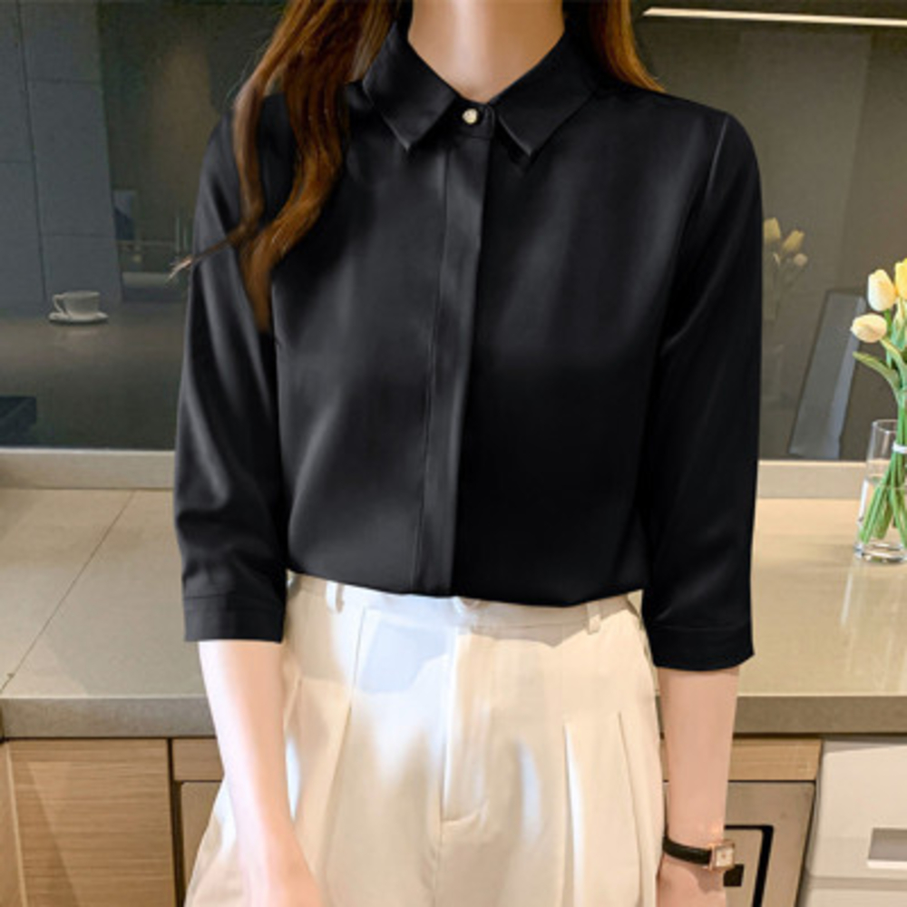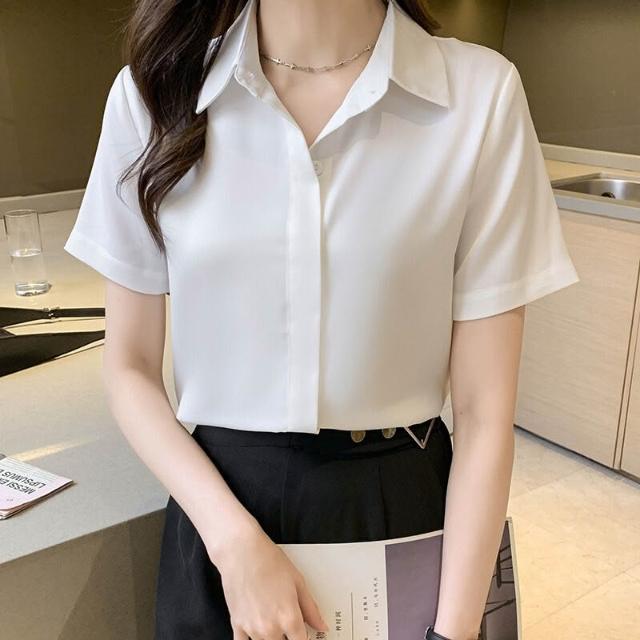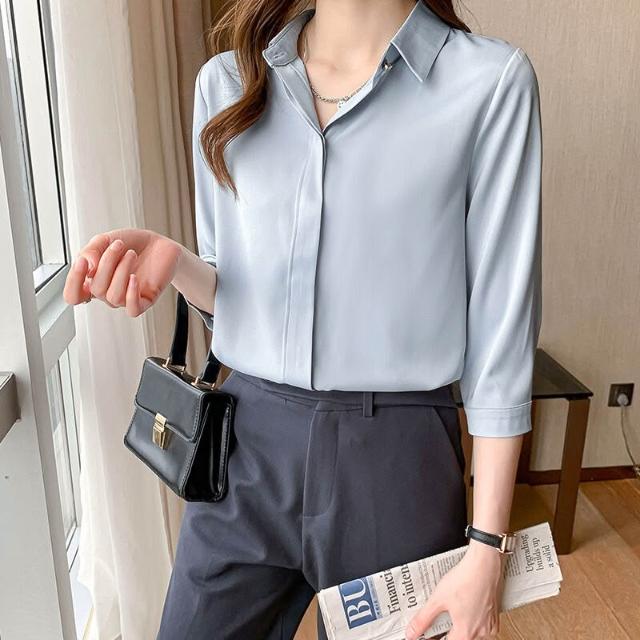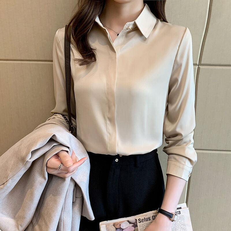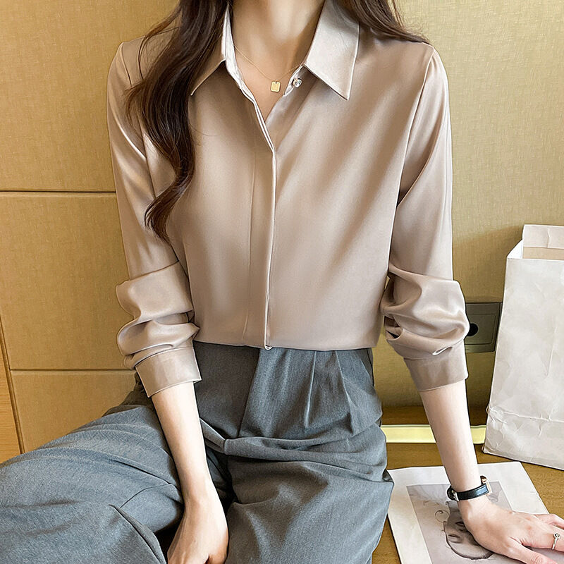 木槿衣坊 2025秋冬白色抗皺襯衫女長袖高級感職業正裝商務教資面試緞面襯衣 70