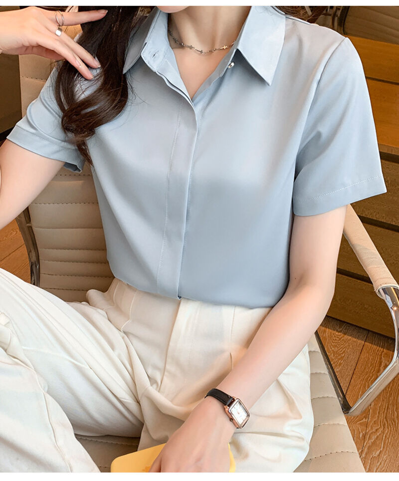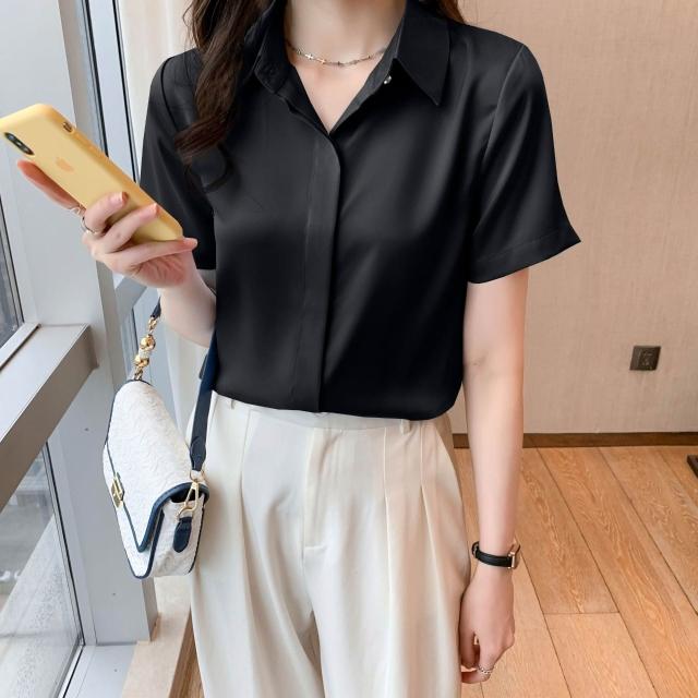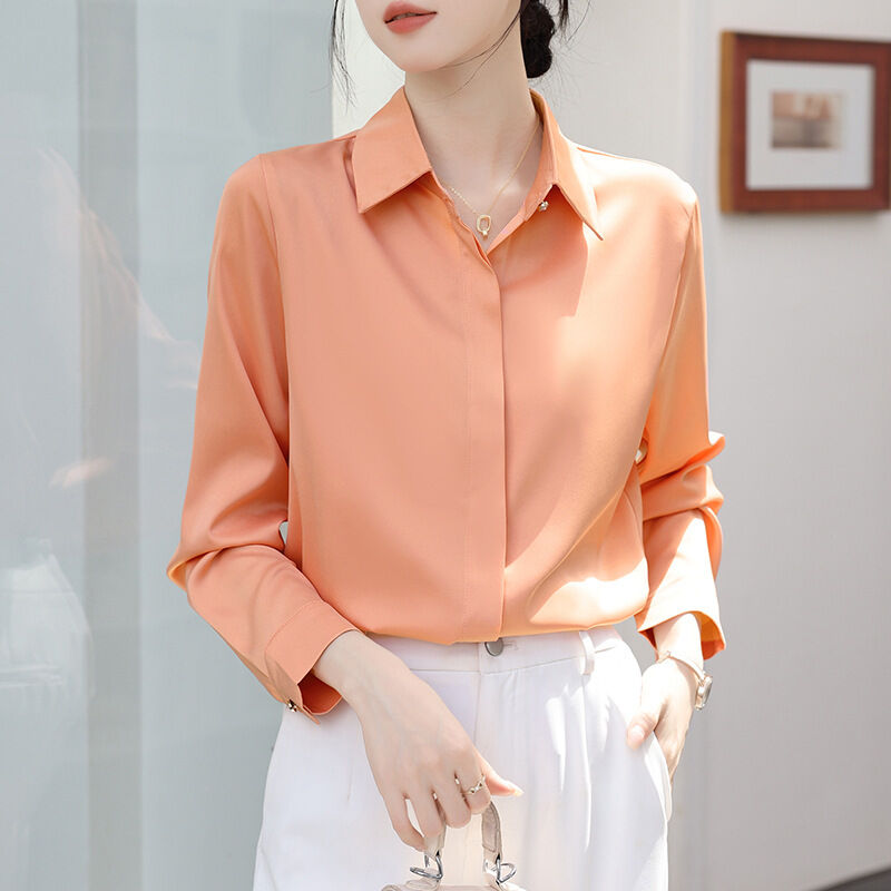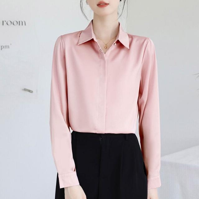 木槿衣坊 2025秋冬白色抗皺襯衫女長袖高級感職業正裝商務教資面試緞面襯衣 70