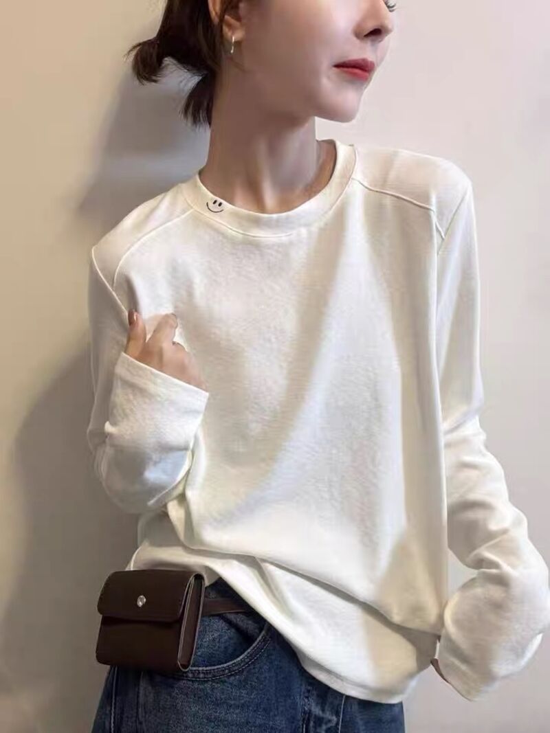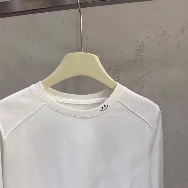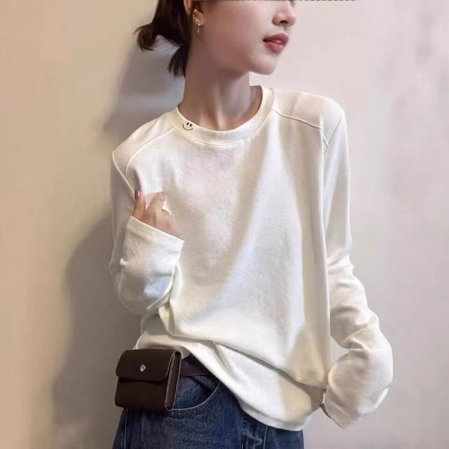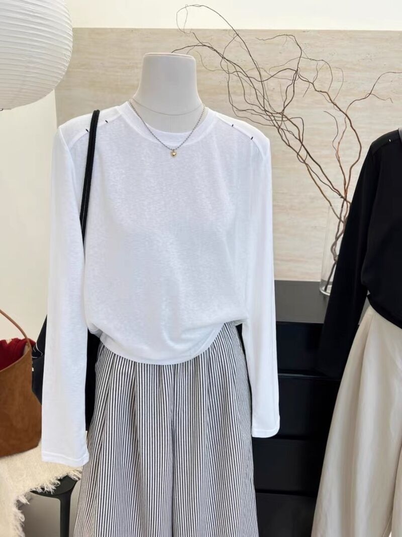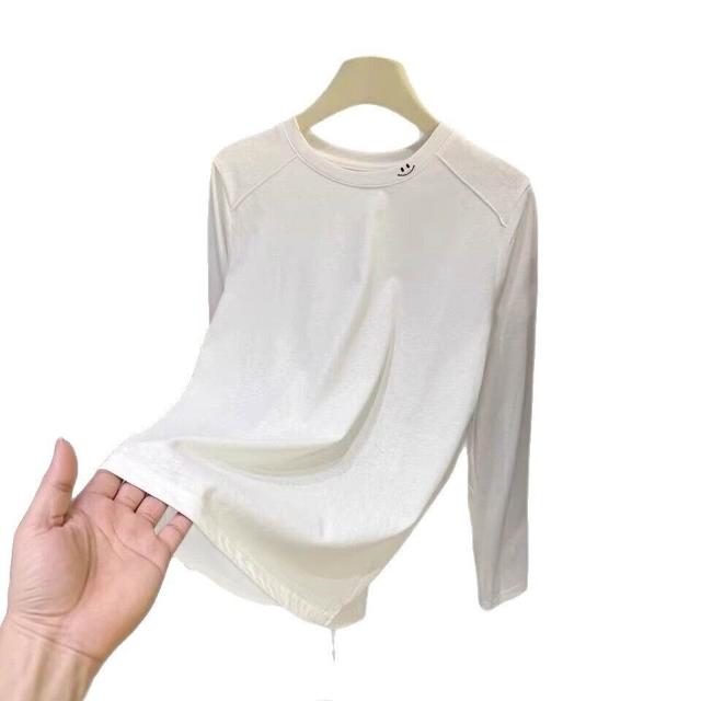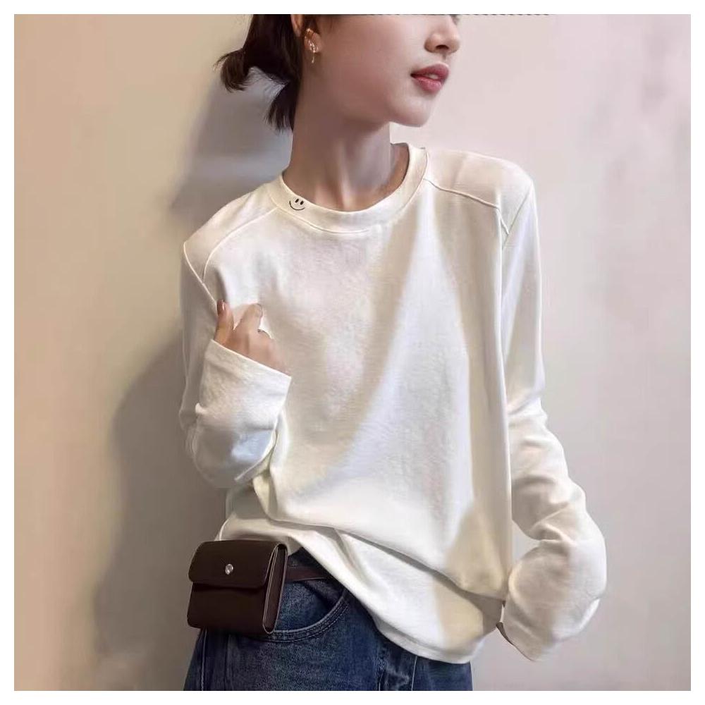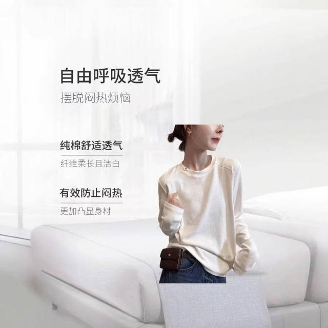 木槿衣坊 2026春夏新款白色長袖 恤女薄款微透雪花棉正肩寬松內搭打底上衣 488