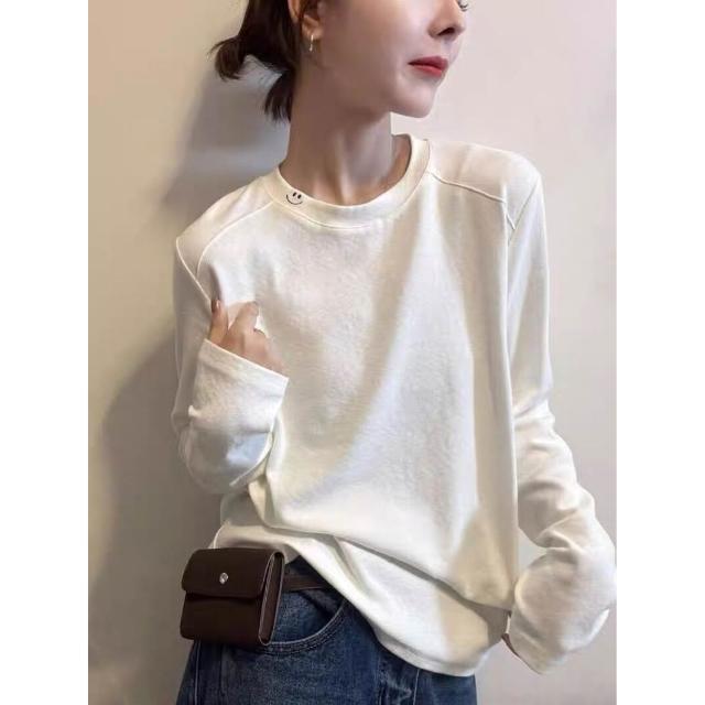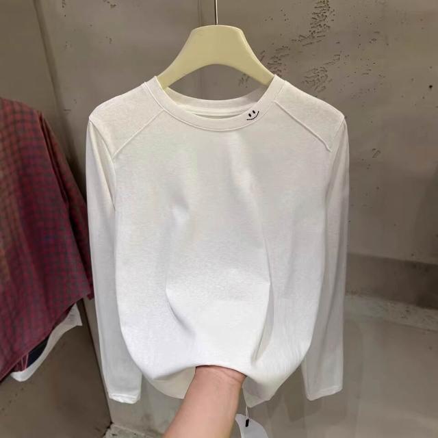 木槿衣坊 2026春夏新款白色長袖 恤女薄款微透雪花棉正肩寬松內搭打底上衣 488