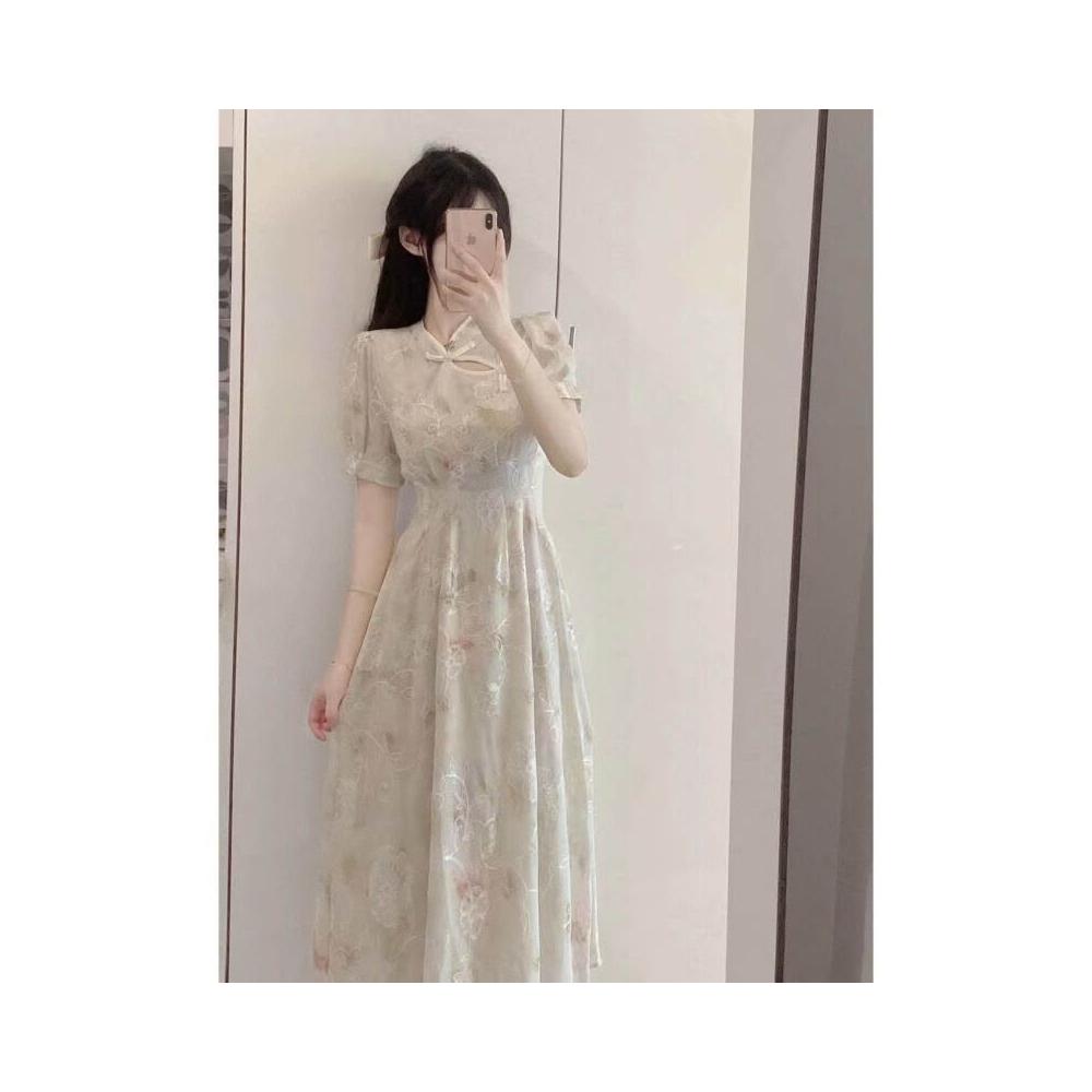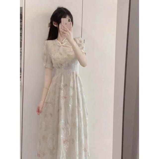 木槿衣坊 2025年新中式碎花改良旗袍連衣裙女夏年輕款少女日常收腰雪紡裙子 274