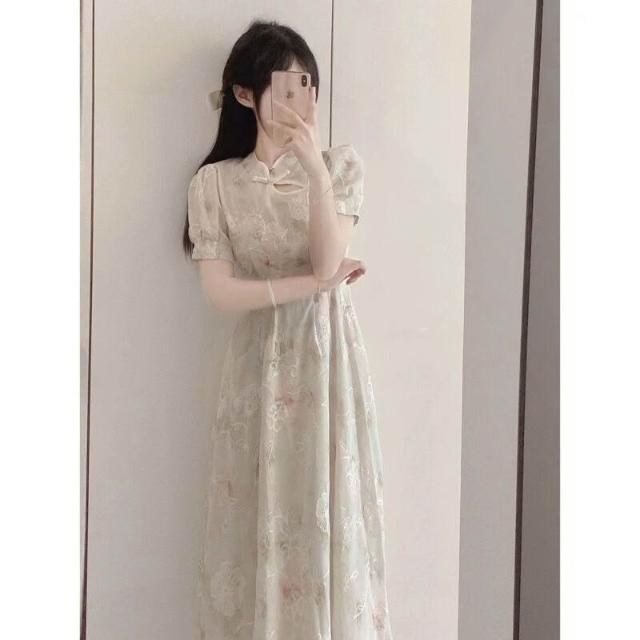 木槿衣坊 2025年新中式碎花改良旗袍連衣裙女夏年輕款少女日常收腰雪紡裙子 274