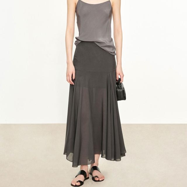 木槿衣坊 現貨 雙绉+雪紡真絲雙層真2件氛圍美學解構拼接不規則裙擺半裙 272