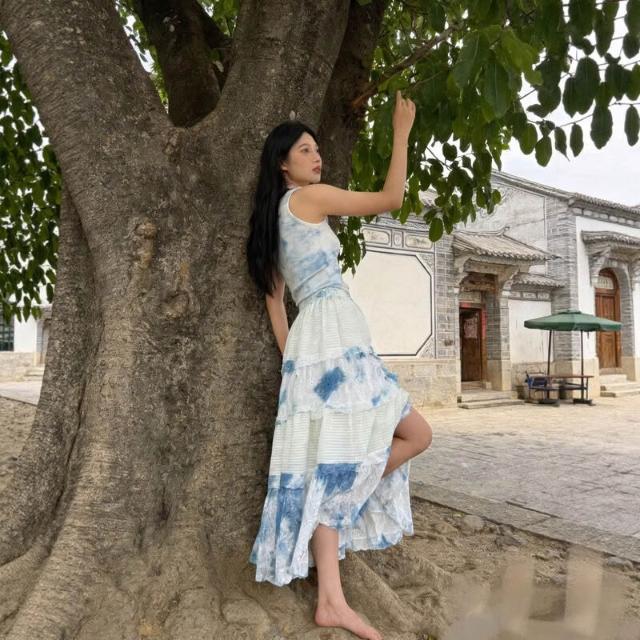 木槿衣坊 雲南大理植物紮染半身裙藍染春夏裝半身裙遮肉民族風長裙廠家直銷 4