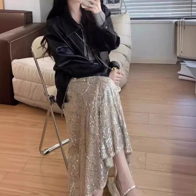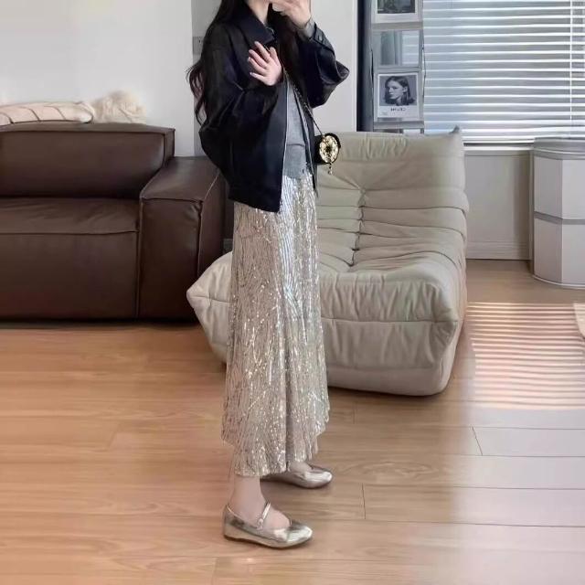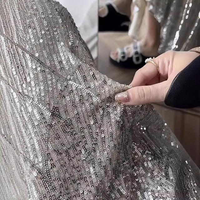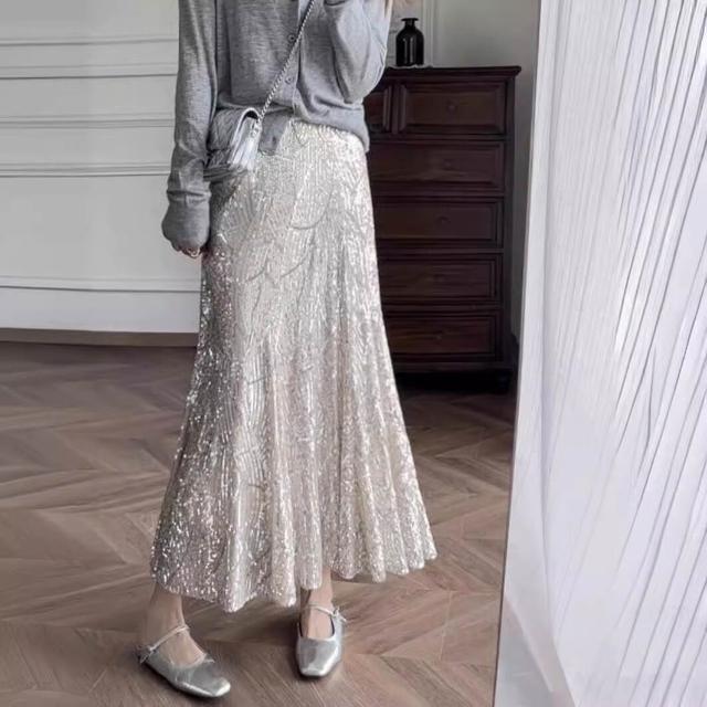 木槿衣坊 銀色亮片半身裙女春夏秋季閃亮半裙重工魚尾裙高級感 字包臀裙子 22