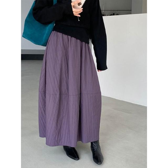 木槿衣坊 江左 人生半裙!高腰加厚花苞半身裙女秋冬保暖中長款燈籠裙 1708 1