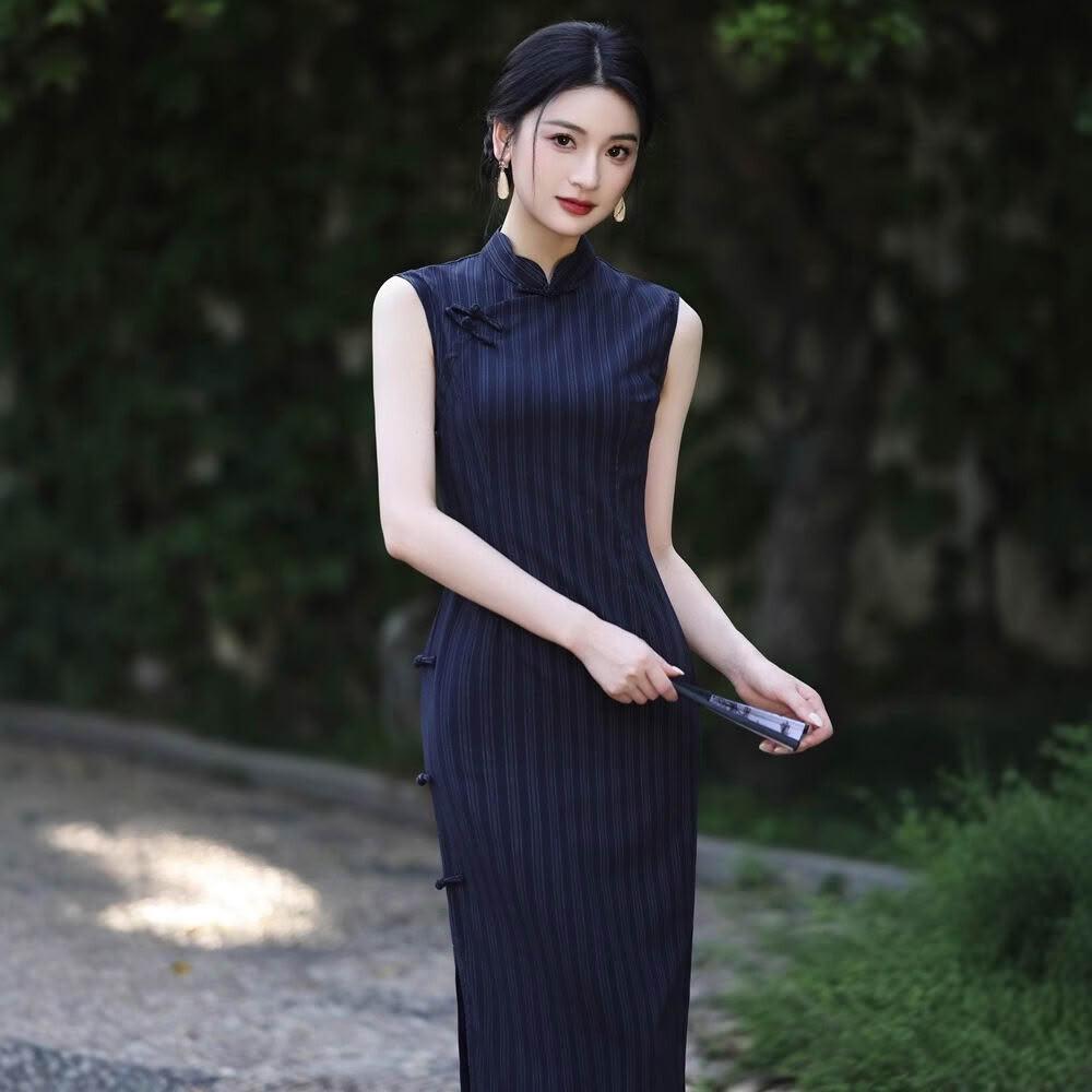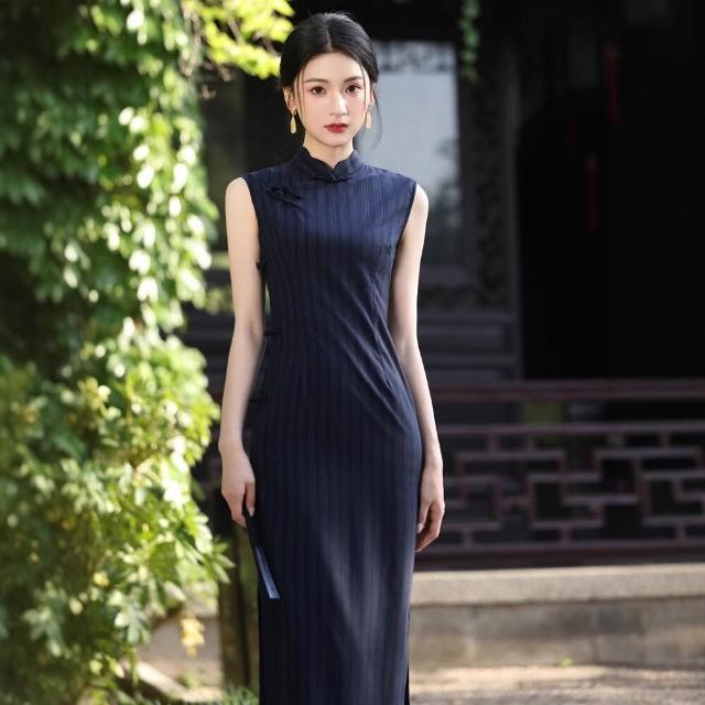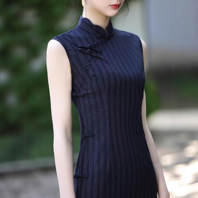 木槿衣坊 旗袍2025年夏季新款文藝素雅年輕少女新中式民國風藍色連衣裙改良 5 9