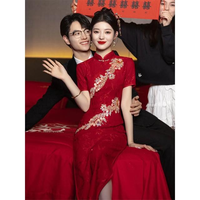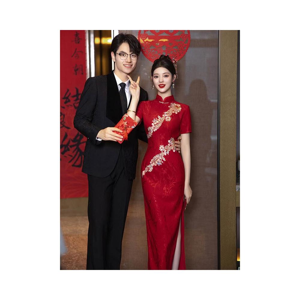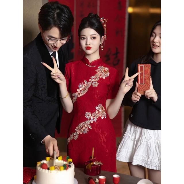 木槿衣坊 結婚旗袍敬酒服2025新款新娘紅色禮服裙訂婚出閣宴新中式夏季重工 212