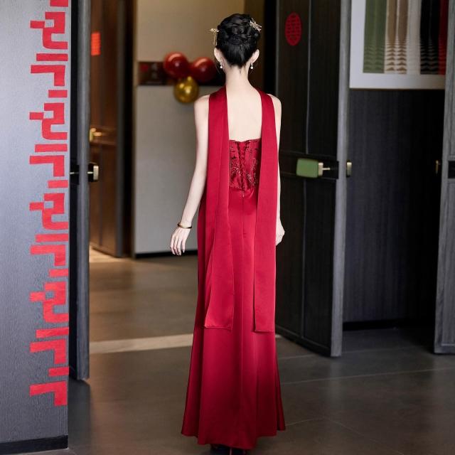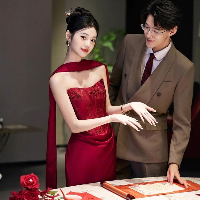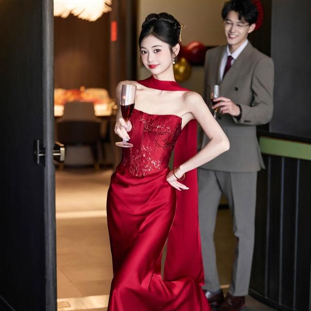 木槿衣坊 紅色敬酒服新娘2026新款訂婚禮服連衣裙高級感結婚晨袍抹胸魚尾女 6 0