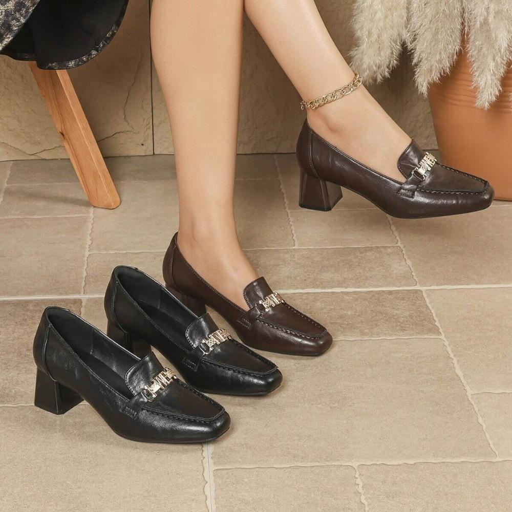 木槿衣坊 粗跟單鞋女2026春季新款韓版小皮鞋法式方頭粗跟大碼跨境樂福鞋 9 3