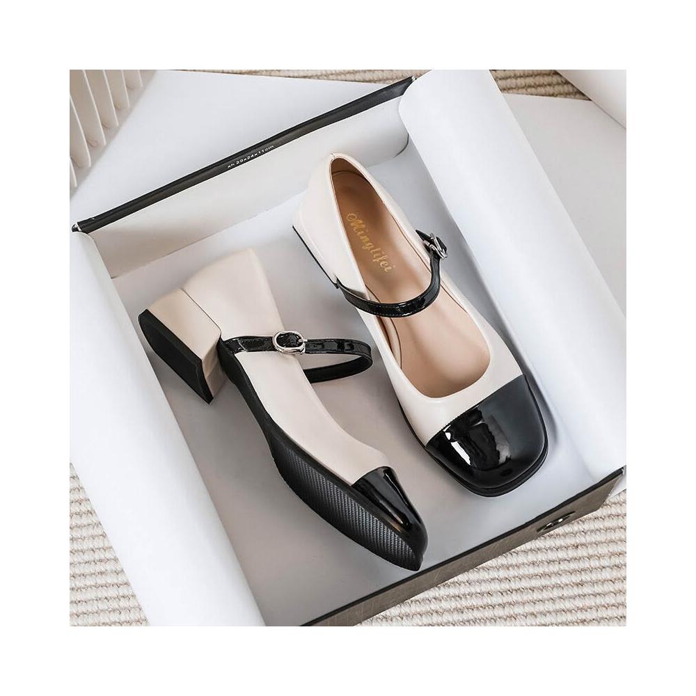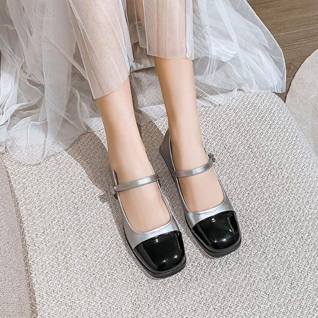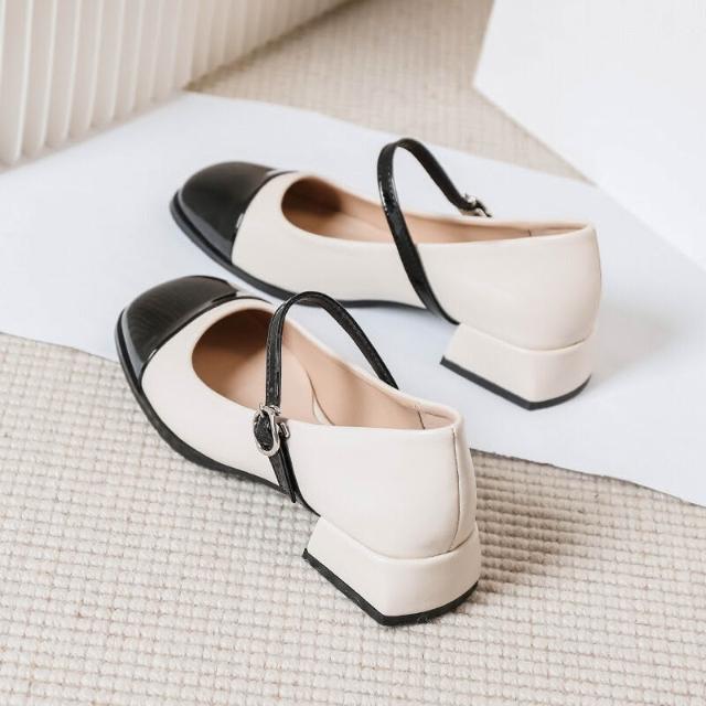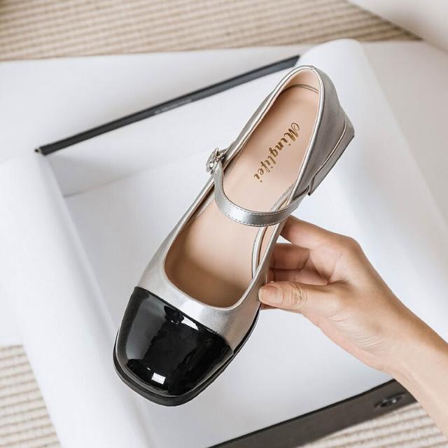木槿衣坊 256-7 小香風瑪麗珍鞋2026新款春秋季黑白復古粗跟小皮鞋氣質單鞋 740