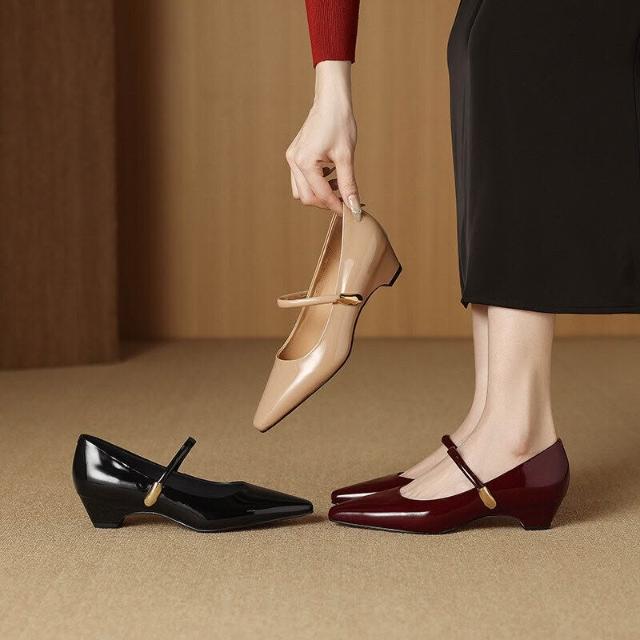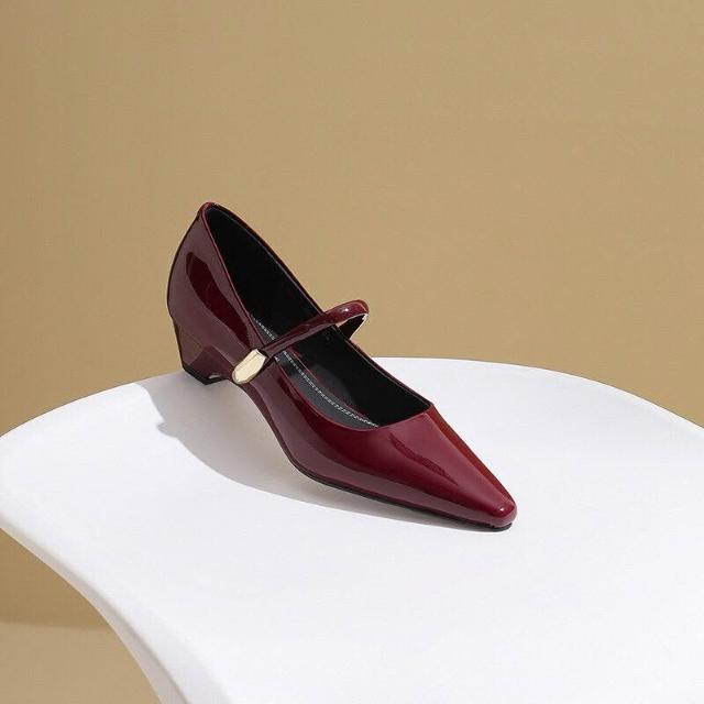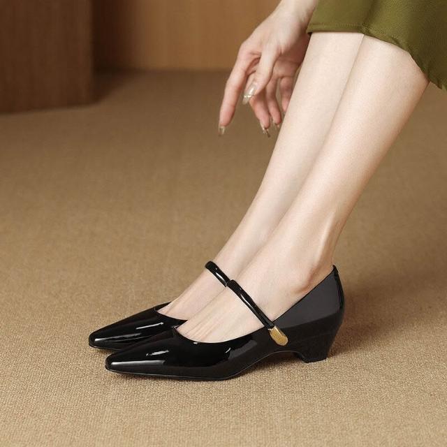 木槿衣坊 法式粗跟瑪麗珍鞋2026春季真皮方頭舒適中跟一字扣單鞋女 22