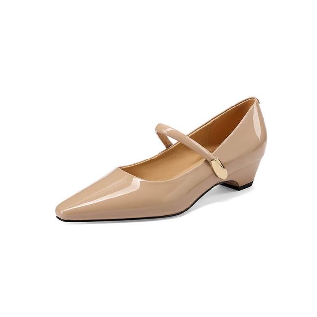 木槿衣坊 法式粗跟瑪麗珍鞋2026春季真皮方頭舒適中跟一字扣單鞋女 22