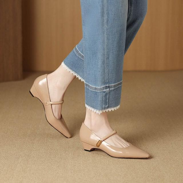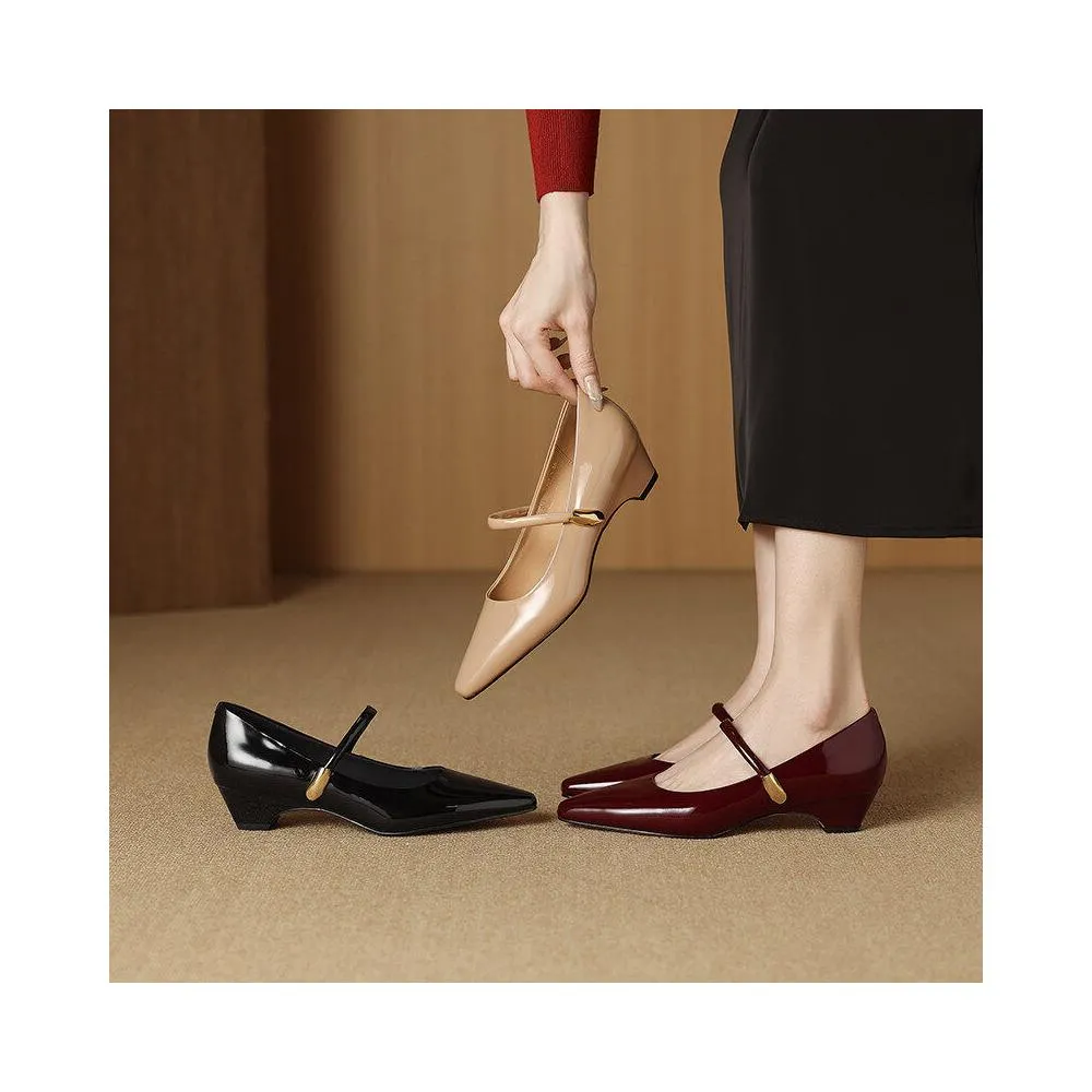 木槿衣坊 法式粗跟瑪麗珍鞋2026春季真皮方頭舒適中跟一字扣單鞋女 22