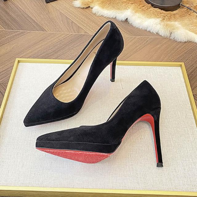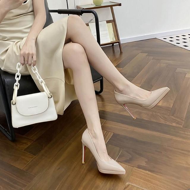 木槿衣坊 裸色紅底高跟鞋女細跟2026年新款防水臺不累腳單鞋氣質尖頭職業鞋 30