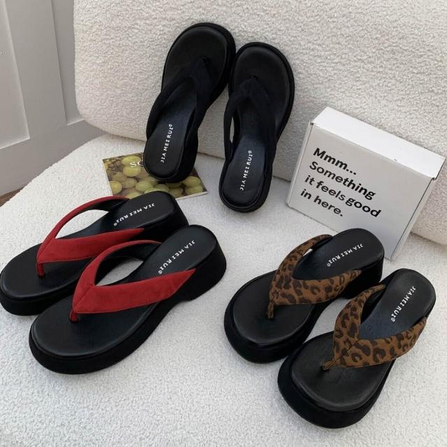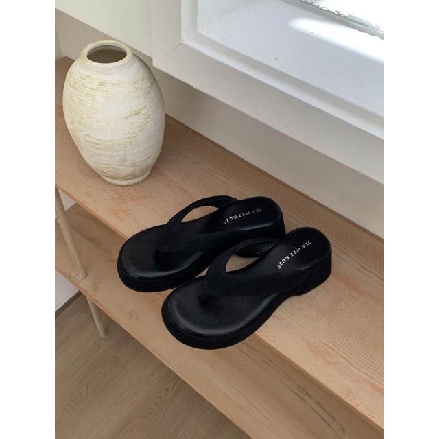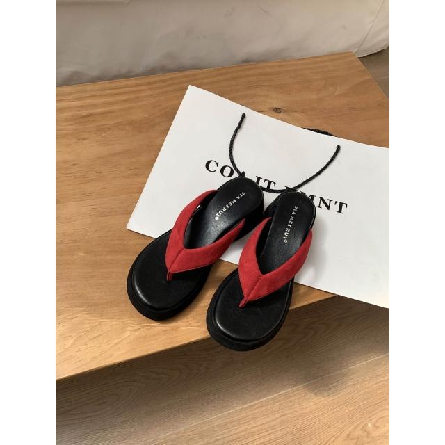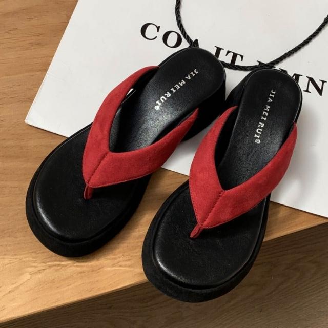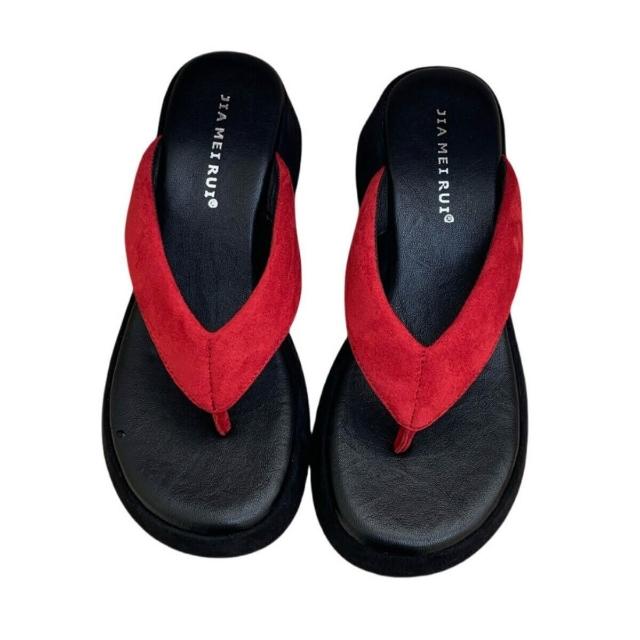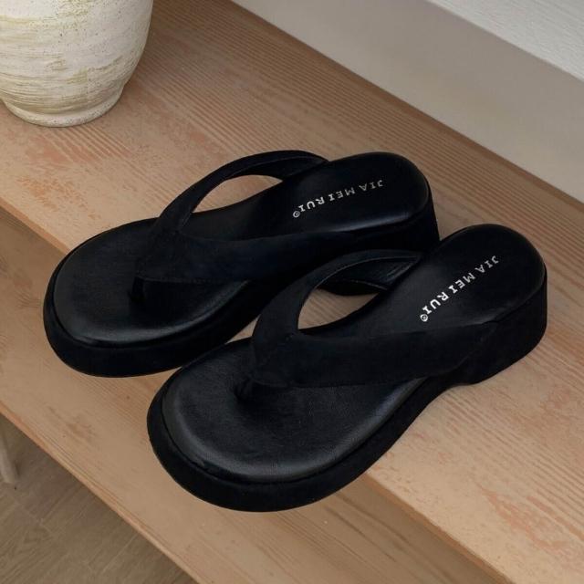 木槿衣坊 現貨新款厚底時尚人字拖休閑夏季外穿百搭平底沙灘拖鞋涼鞋充棉 9