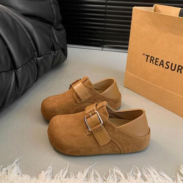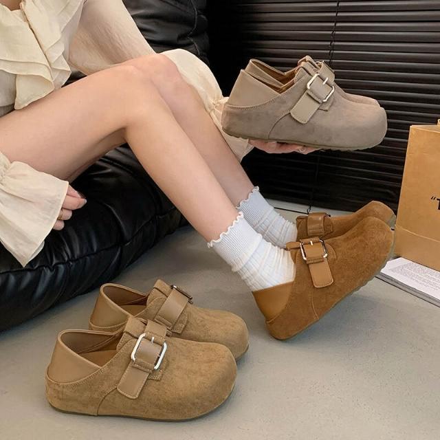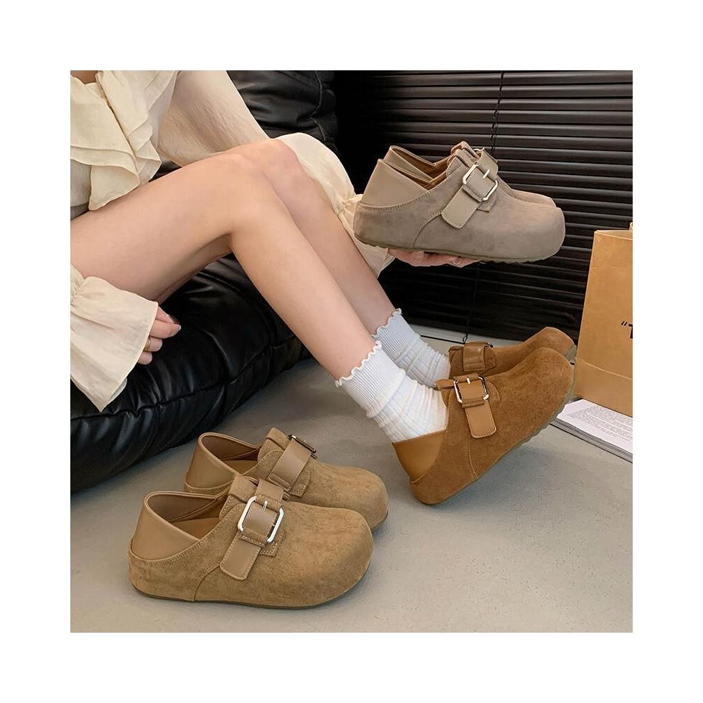 木槿衣坊 復古兩穿全包勃肯鞋女2026春季新款厚底內增高百搭豆豆鞋樂福單鞋 1 8