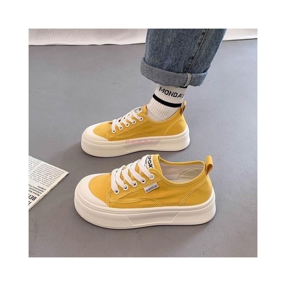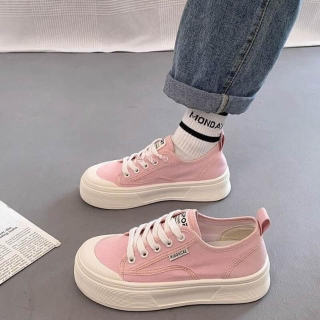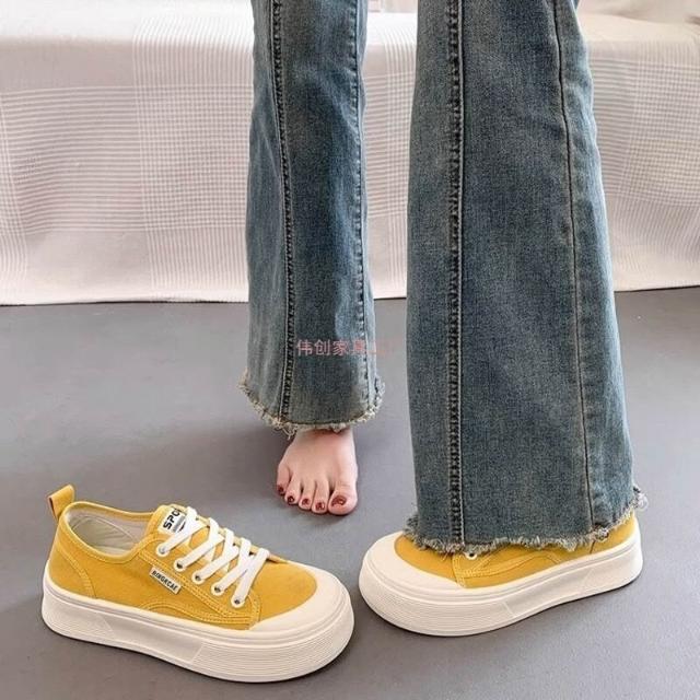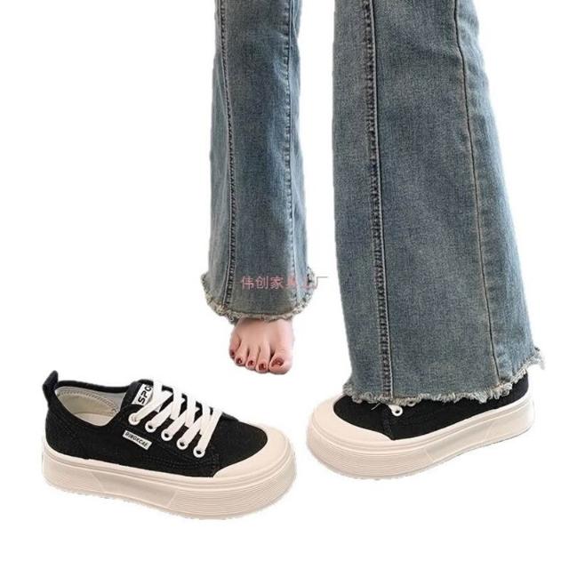 木槿衣坊 厚底帆布鞋女2025夏季新款透氣百搭爆款休閑薄款增高小白運動板鞋 524