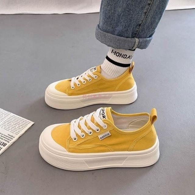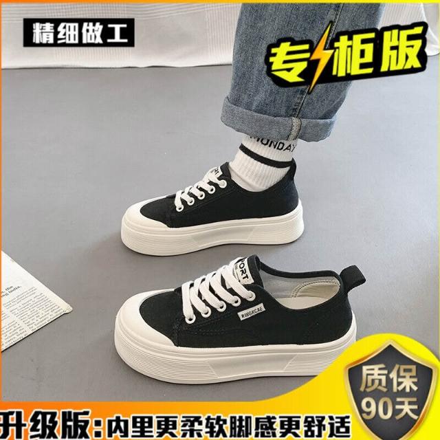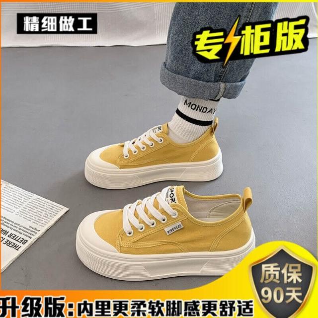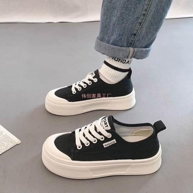 木槿衣坊 厚底帆布鞋女2025夏季新款透氣百搭爆款休閑薄款增高小白運動板鞋 524