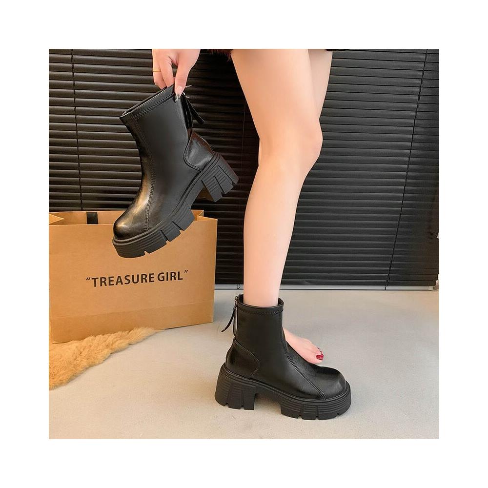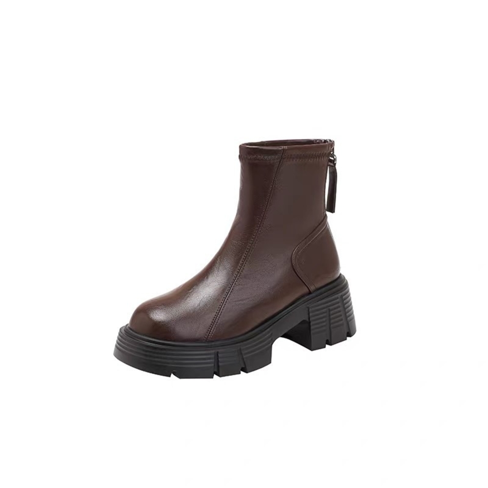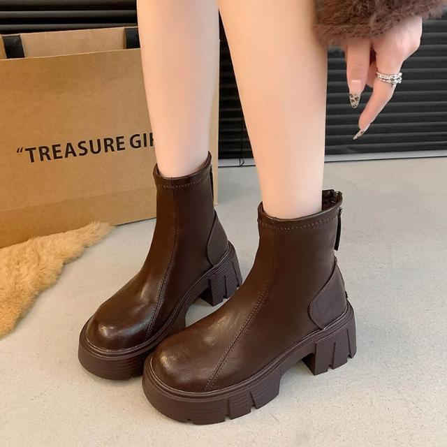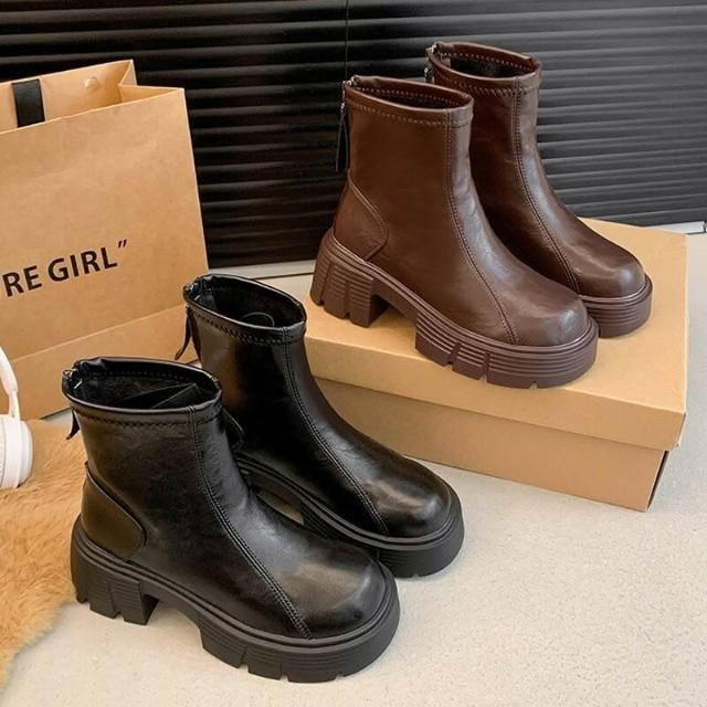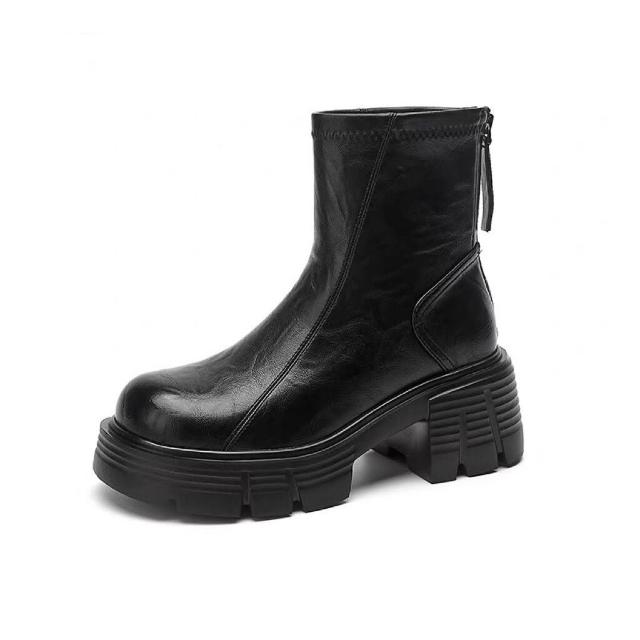 木槿衣坊 牛皮版厚底增高馬丁靴加絨女靴2025秋冬切爾西顯瘦瘦復古粗跟短靴 397