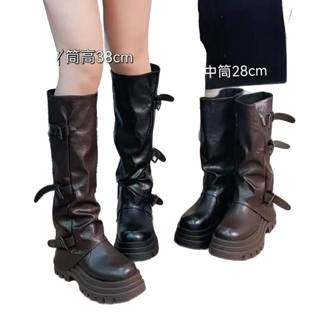 木槿衣坊 20-906堆堆靴小個子厚底長筒靴2025年秋冬新款騎士靴女厚底褲管靴
