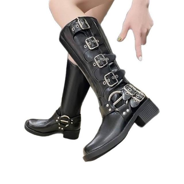木槿衣坊 旅遊必穿靴子女美式復古馬丁靴棕色高筒靴長筒西部牛仔靴女靴子 7