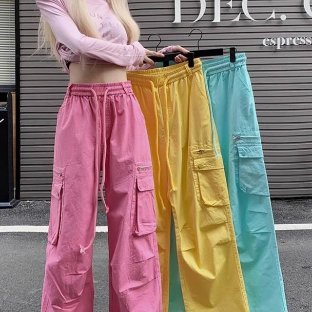 木槿衣坊 美式多巴胺彩色工裝褲女2025春秋新款甜酷風辣妹寬松高腰闊腿褲子 5 2