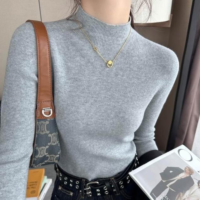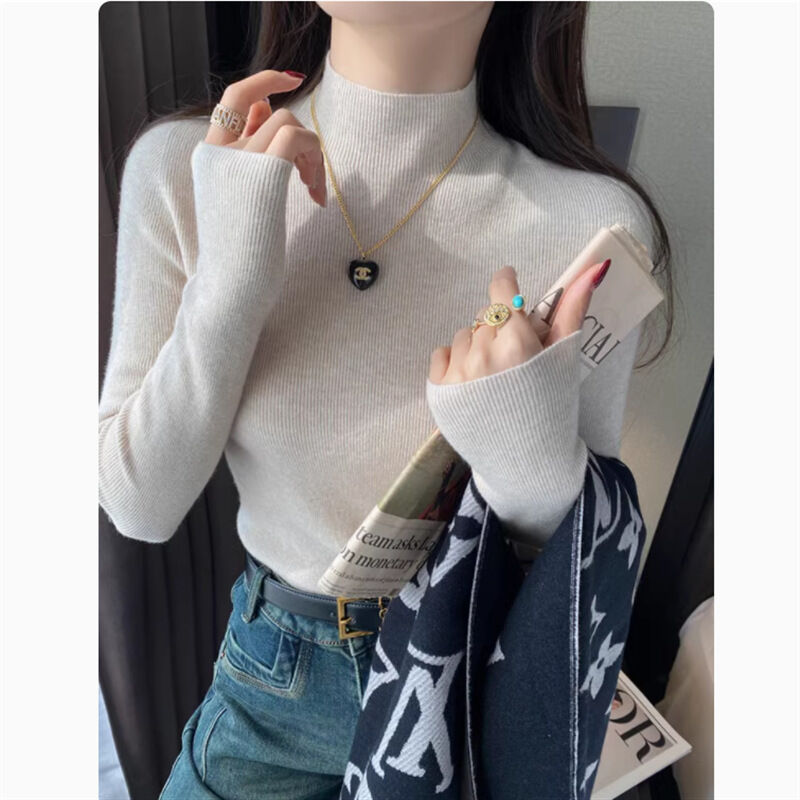 木槿衣坊 灰色半高領打底針織衫女2025秋冬新款內搭無縫一體毛衣軟糯上衣潮 8
