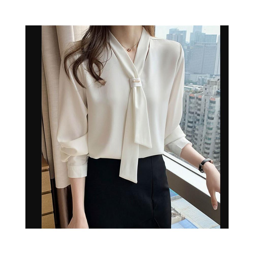 木槿衣坊 白色襯衫女2026春夏季新款設計感小眾上衣職業休閑長袖氣質雪紡衫 9
