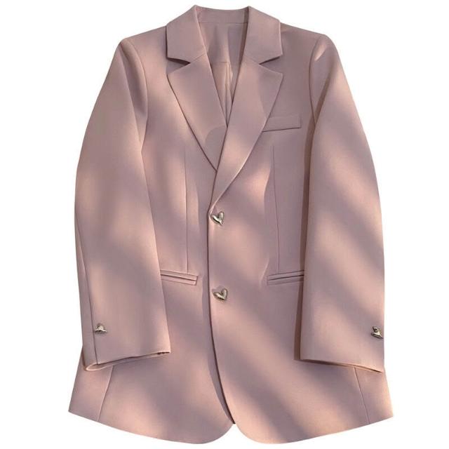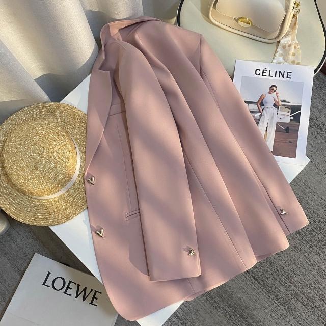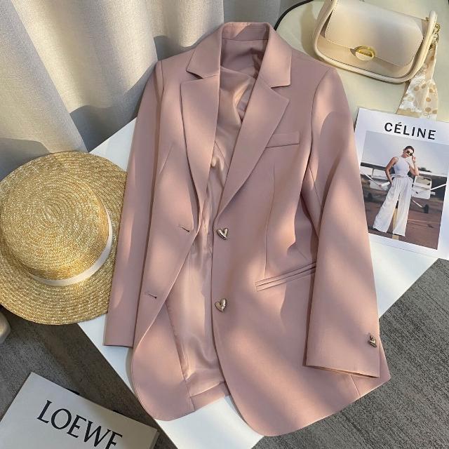 木槿衣坊 2025年早春新款淡粉色溫柔氣質西裝外套女愛心扣簡約百搭網紅潮流 1