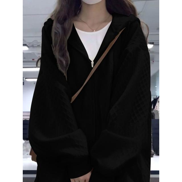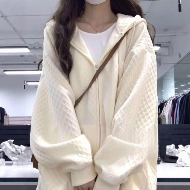 木槿衣坊 設計感小眾華夫格連帽衛衣女春春 薄款外套寬松慵懶開衫 9