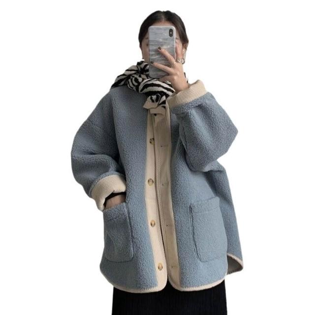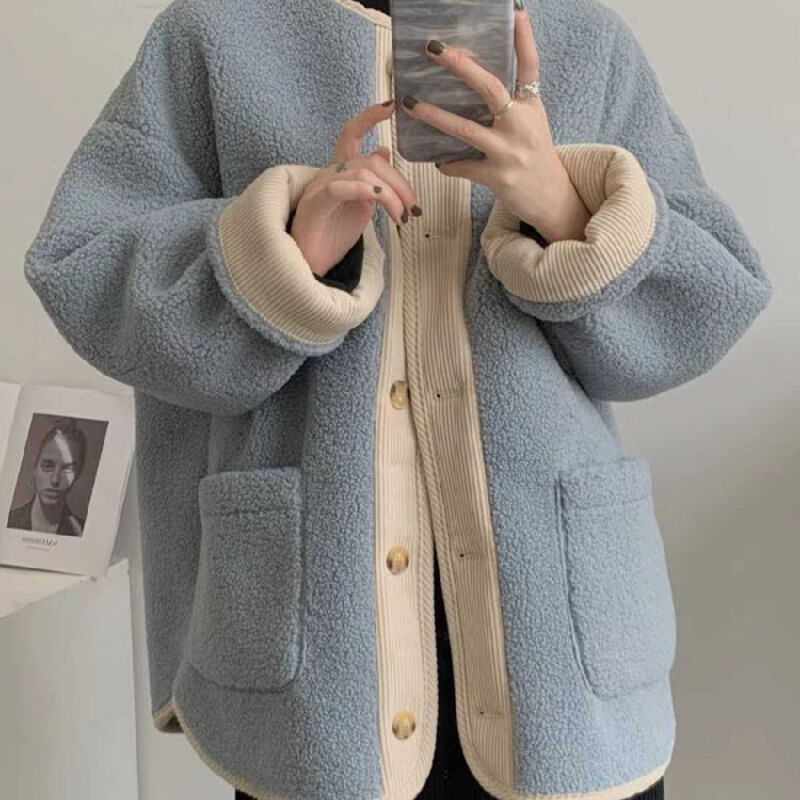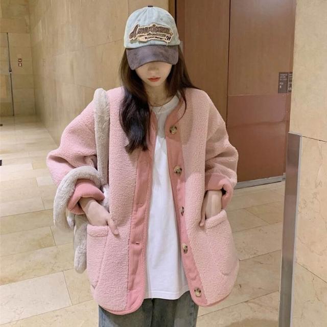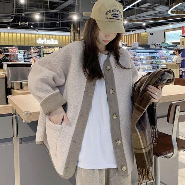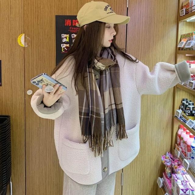 木槿衣坊 奶系穿搭外套女秋冬2026新款韓版仿羊羔毛加厚寬松中長款長袖上衣 3